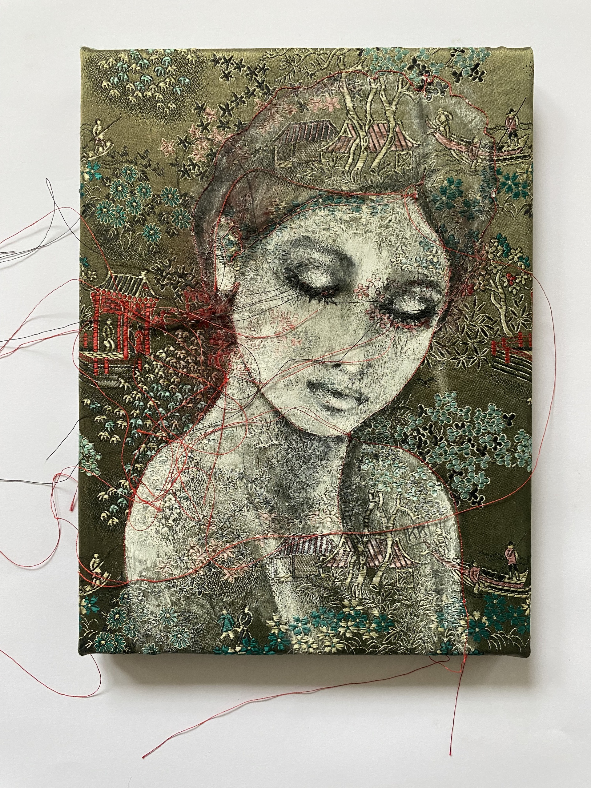 Afgestudeerd Monumentale Vormgeving aan de Academie Beeldende Kunsten Maastricht. (Maastricht Institute of Arts) Vrouwelijke figuren, sensualiteit, kracht en kwetsbaarheid in zwarte draden.
