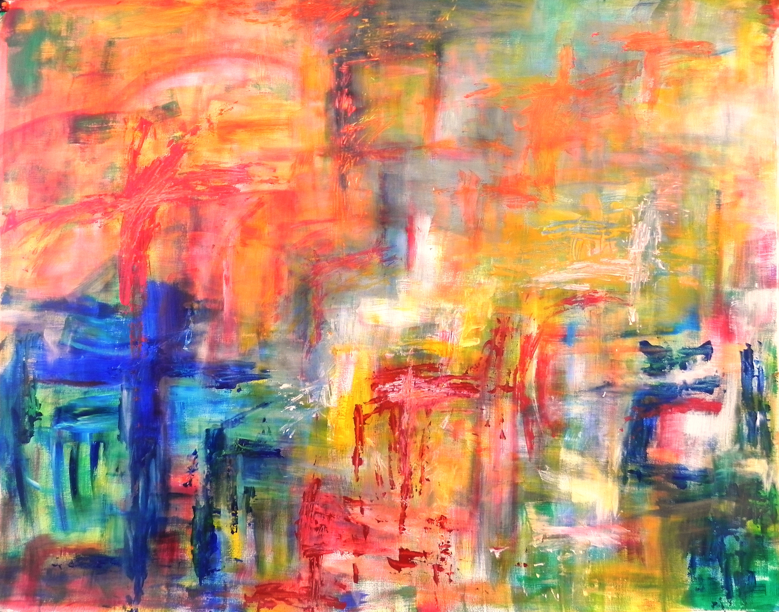 Ontmoetingen, dromen, indrukken, ervaringen - de weg - verwerkt in schilderijen met veel kleur - impressionistisch, expressionistisch, abstract - olieverf, acrylverf, krijt en houtskool.