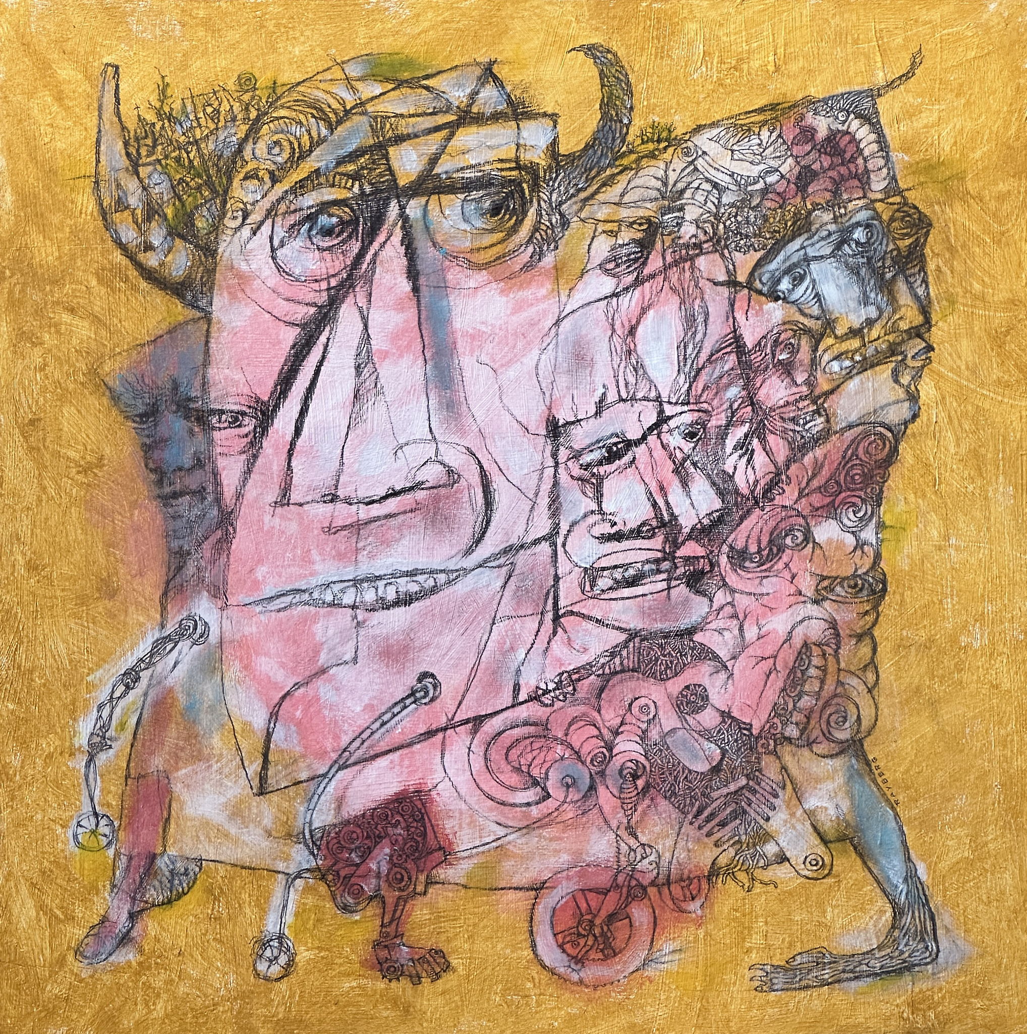 Schilderij. Acrylic/graphite/panel 50x50 cm.