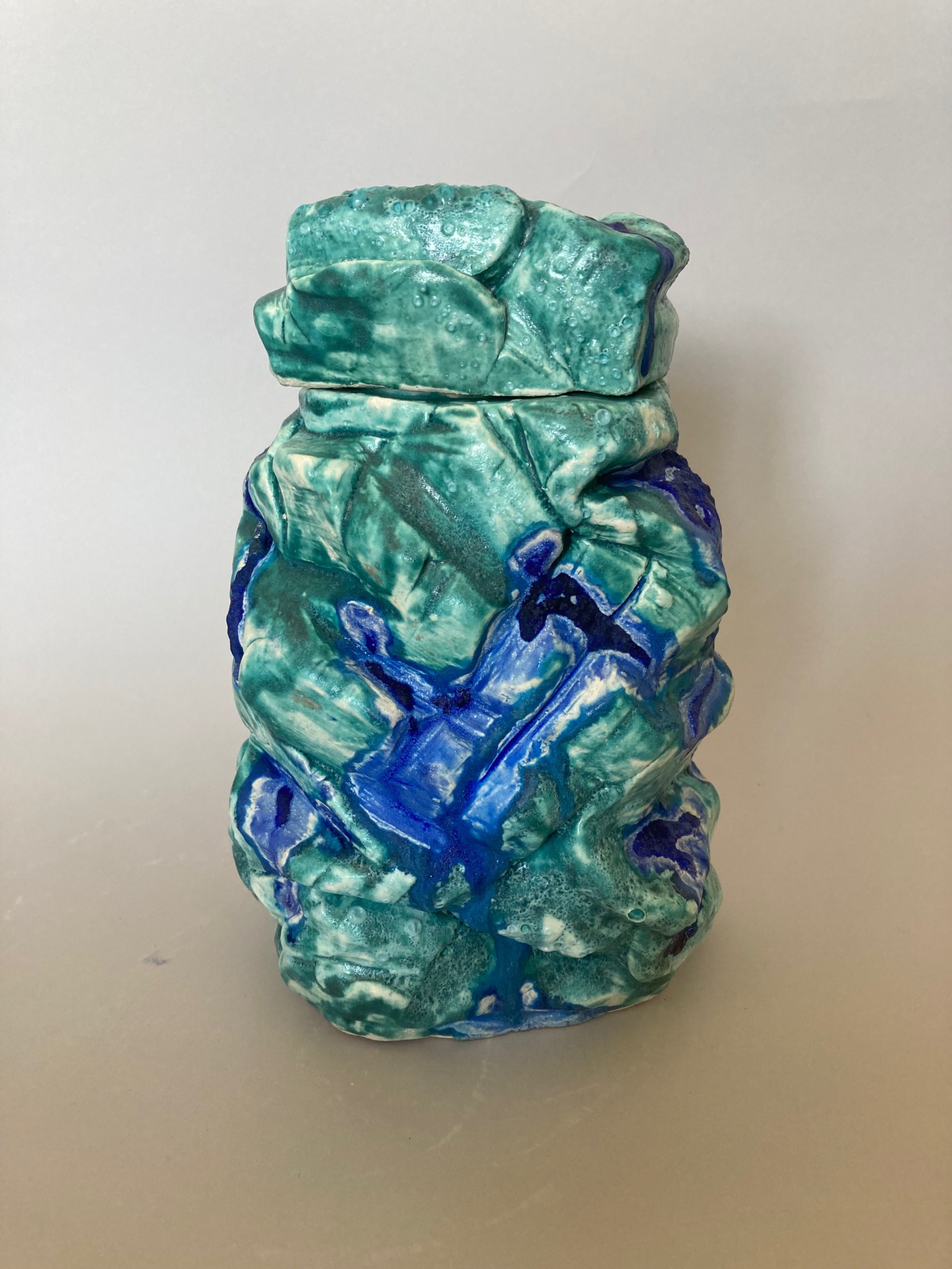 De objecten die ik maak zijn handgevormd. Ze zijn vooral bedoeld om naar te kijken, niet om te gebruiken. Ik hou van de huid van de klei en laat die graag zien. Door niet altijd het hele oppervlak te glazuren blijft het ruige uiterlijk van het materiaal zichtbaar. De laatste jaren heb ik veel met asglazuur gewerkt. Die as is steeds anders van samenstelling, waardoor het glazuur een grote mate van onvoorspelbaarheid heeft. Dat houdt het spannend.