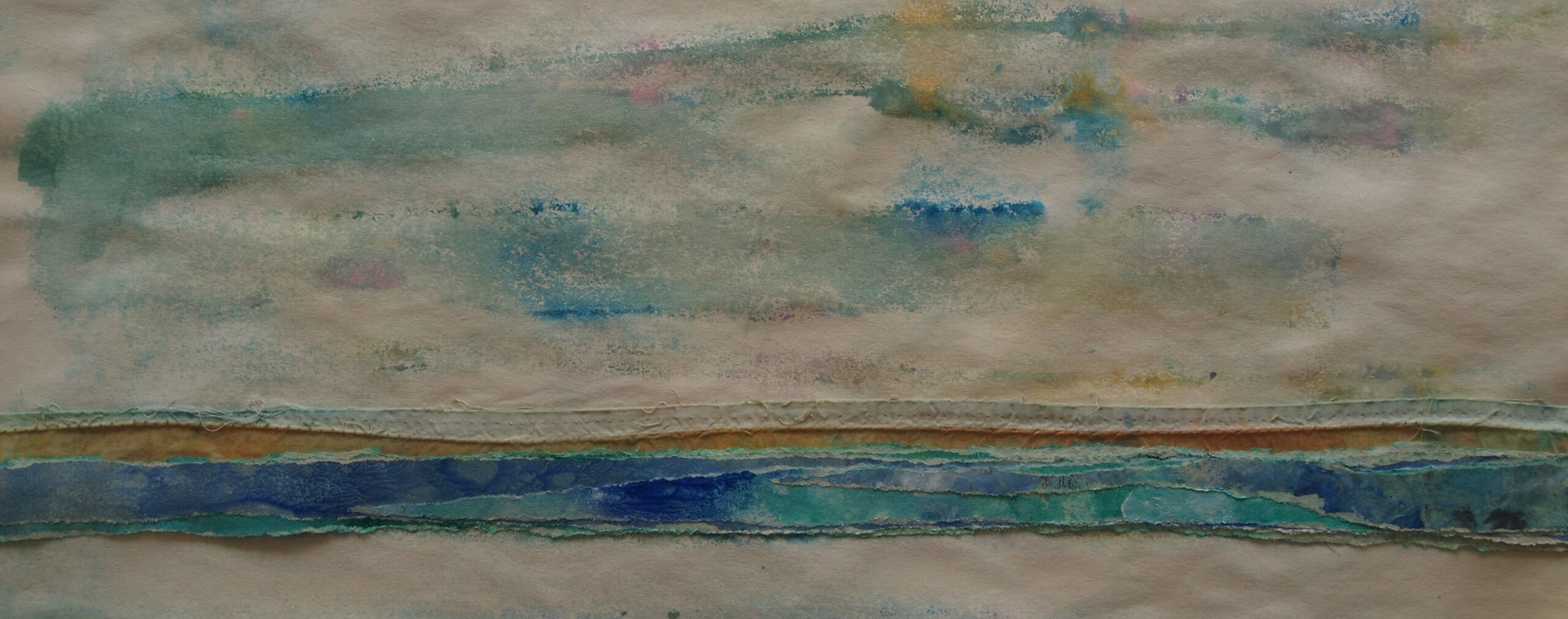 de branding van de eindeloze deining van de zee weergegeven in acryl met meerdere lagen papier