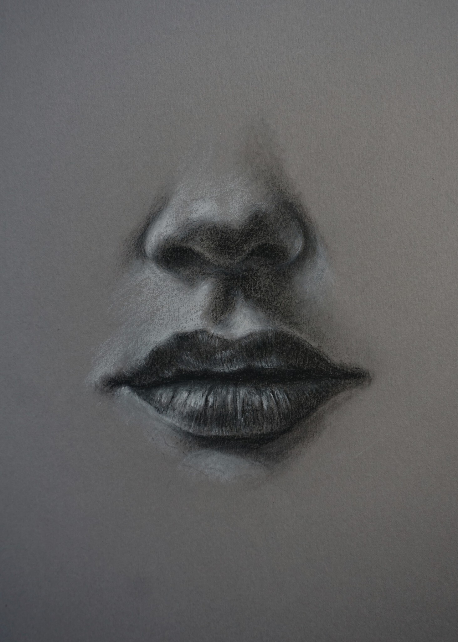 Mond Gezicht Lippen Frontaal Kijken Krijt Papier Getint