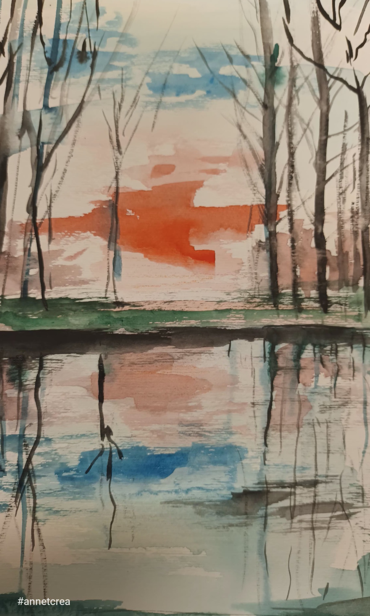 Een kleurige aquarel, geïnspireerd door een eigen foto, gemaakt op een van mijn fietstochtjes