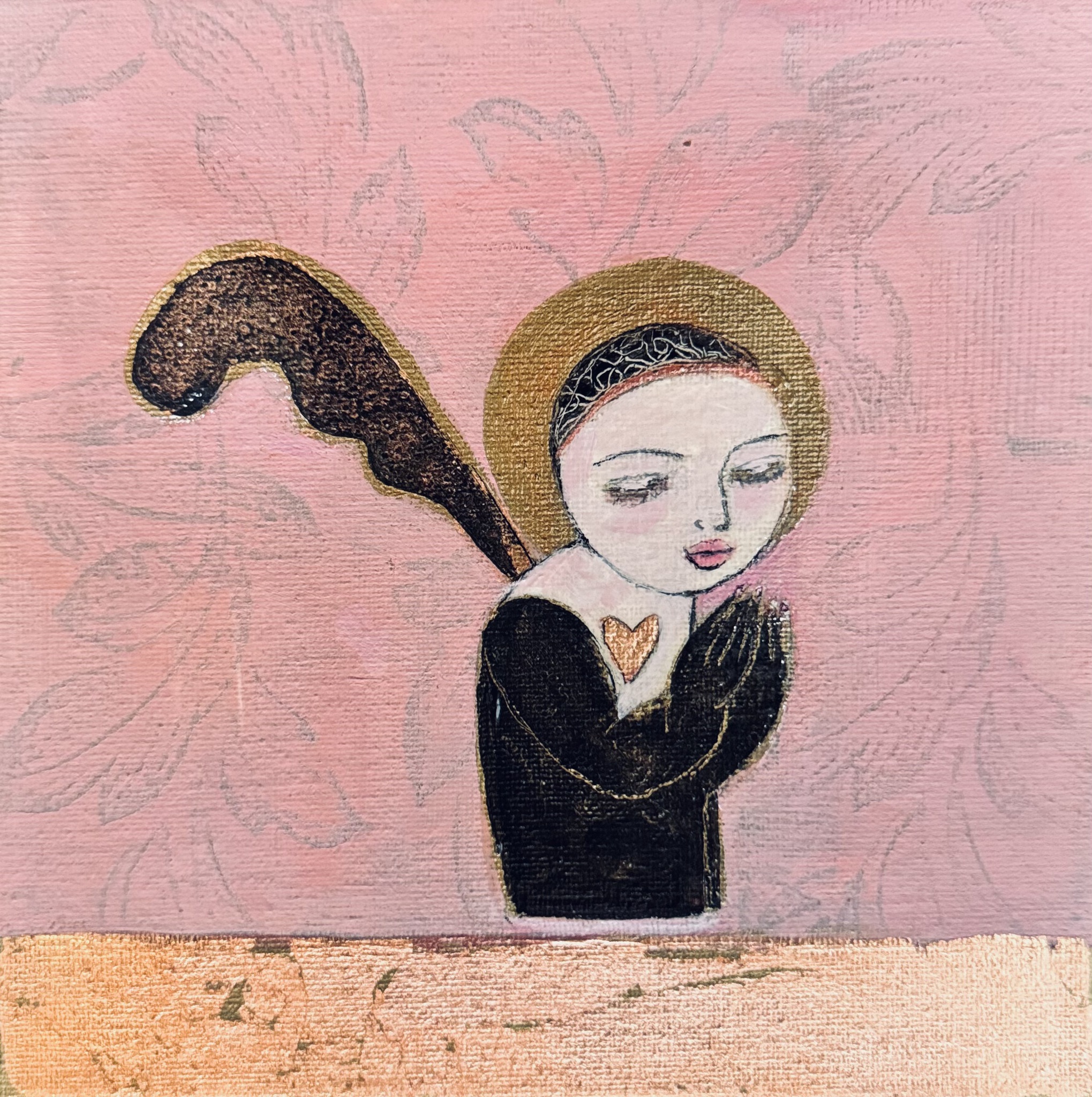 Schilderij Zwart Roze Bladgoud Engeltje
