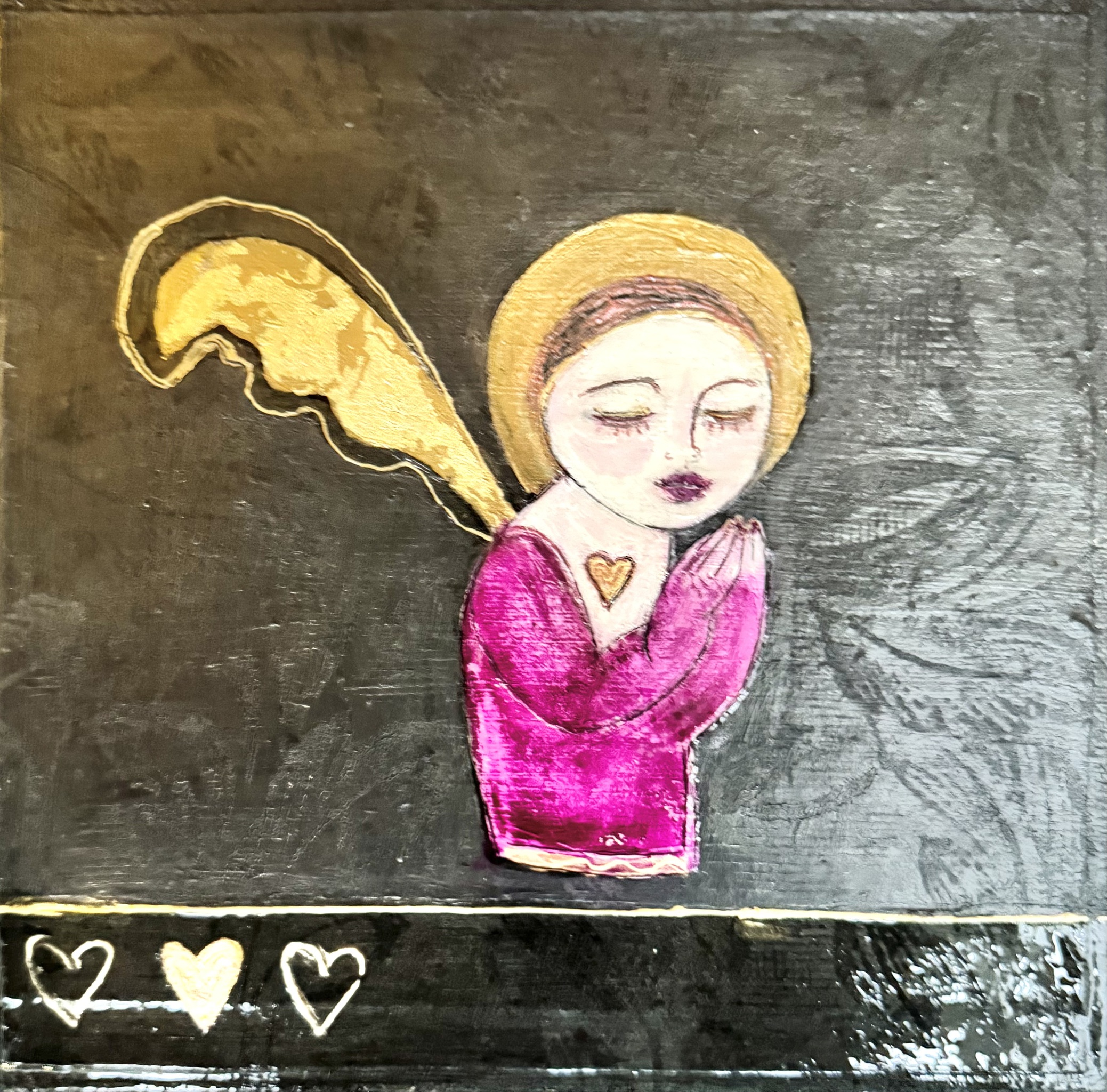 Engeltje op doek en houten omlijsting