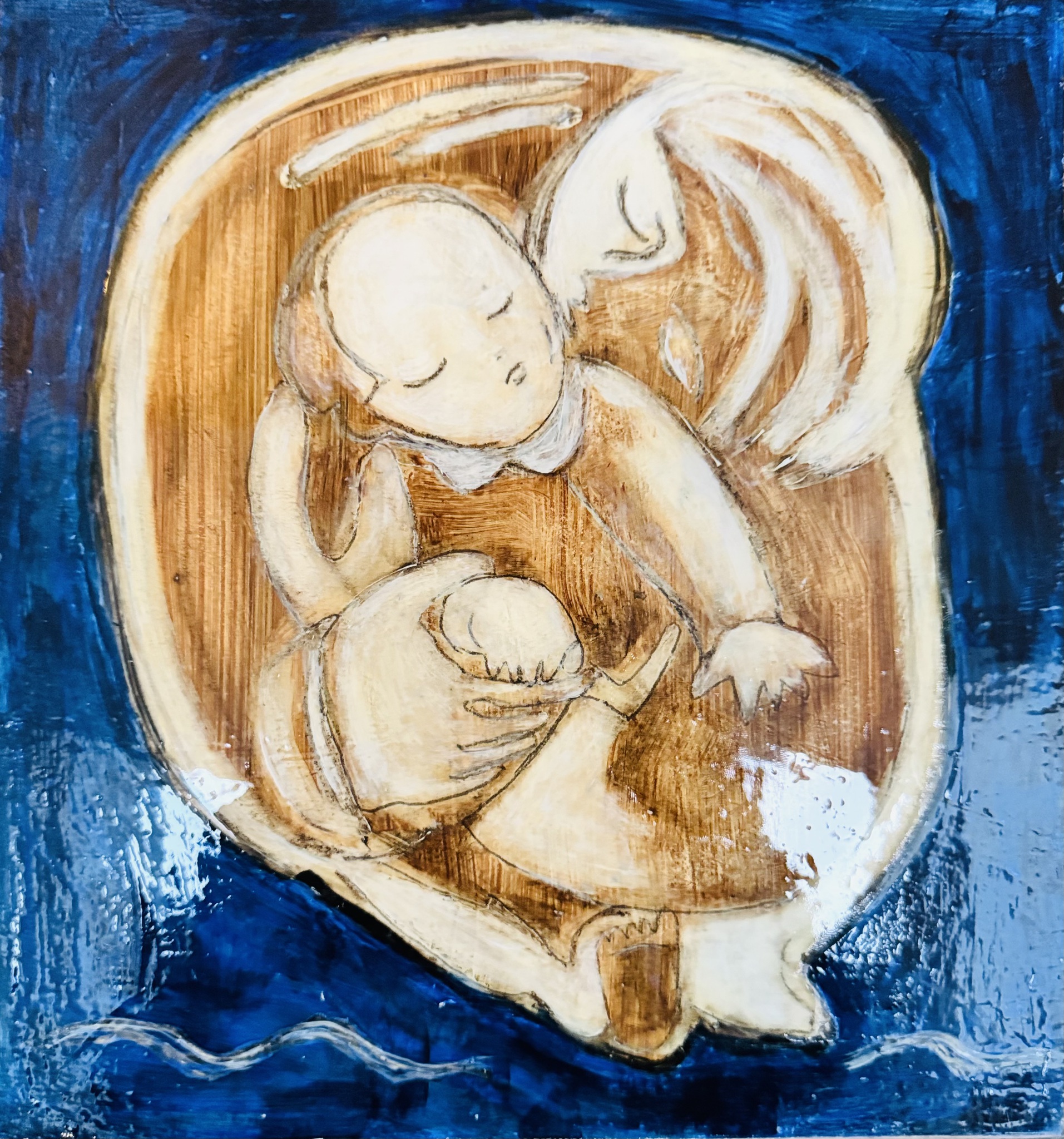 Gold Blue Mother Child And Wood