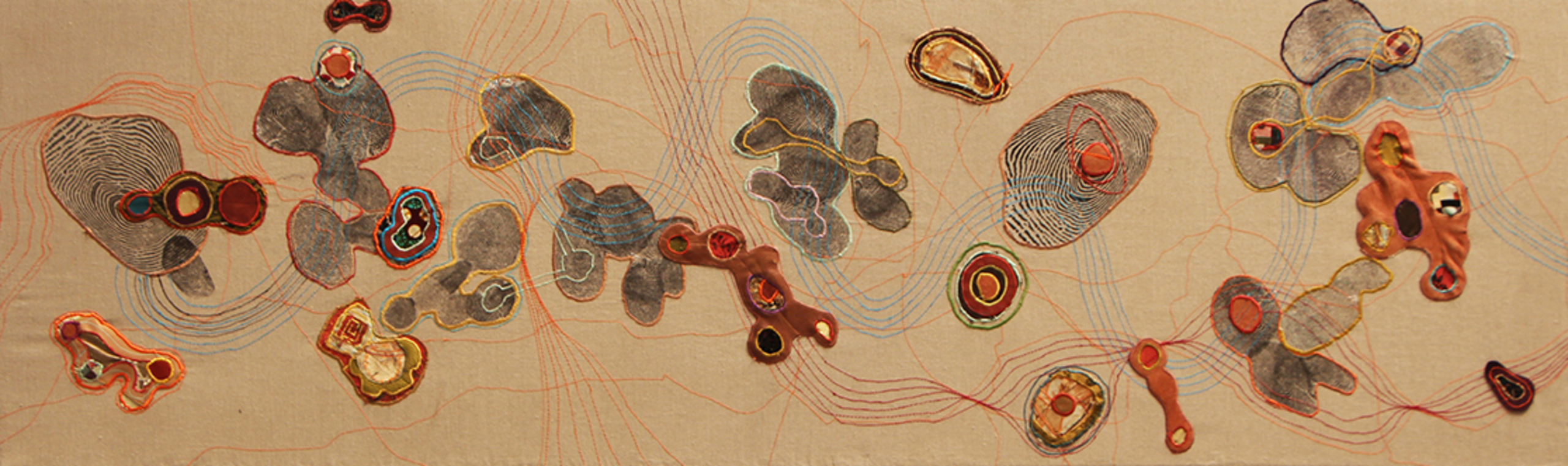 Echoes of Memories resoneert met subtiele beweging, alsof elke markering of textuur een fluistering van een verhaal bevat. Organische vormen harmoniëren met de ruwe eenvoud van de gebruikte materialen, en vangen de vergankelijkheid van lang vervlogen momenten. Verstrengelde vingerafdrukken vloeien door de texturen en roepen de aanhoudende echo's op van herinneringen die in de tijd zijn achtergelaten. Ze onthullen de fragiliteit en de blijvende kracht van herinneringen, vergelijkbaar met voetstappen in zand—delicaat maar blijvend. Het werk nodigt de kijker uit om het intieme samenspel tussen aanraking, tijd en herinnering te verkennen.