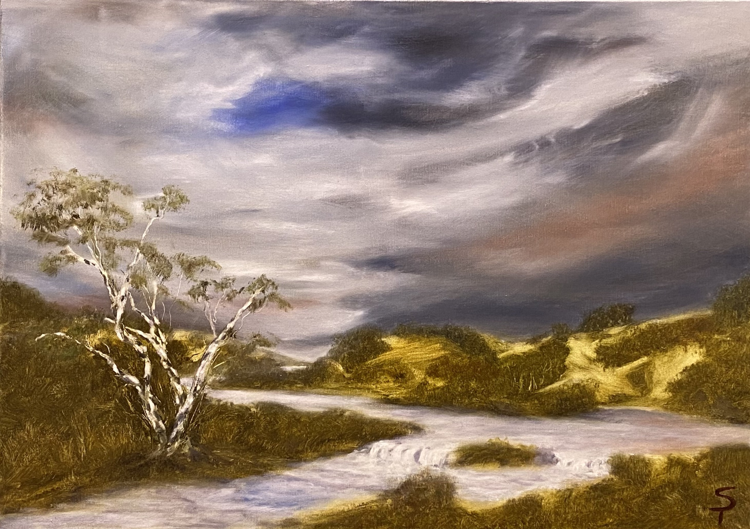 Landschap Water Boom Dreigende Lucht Surreeel Olieverf Canvas