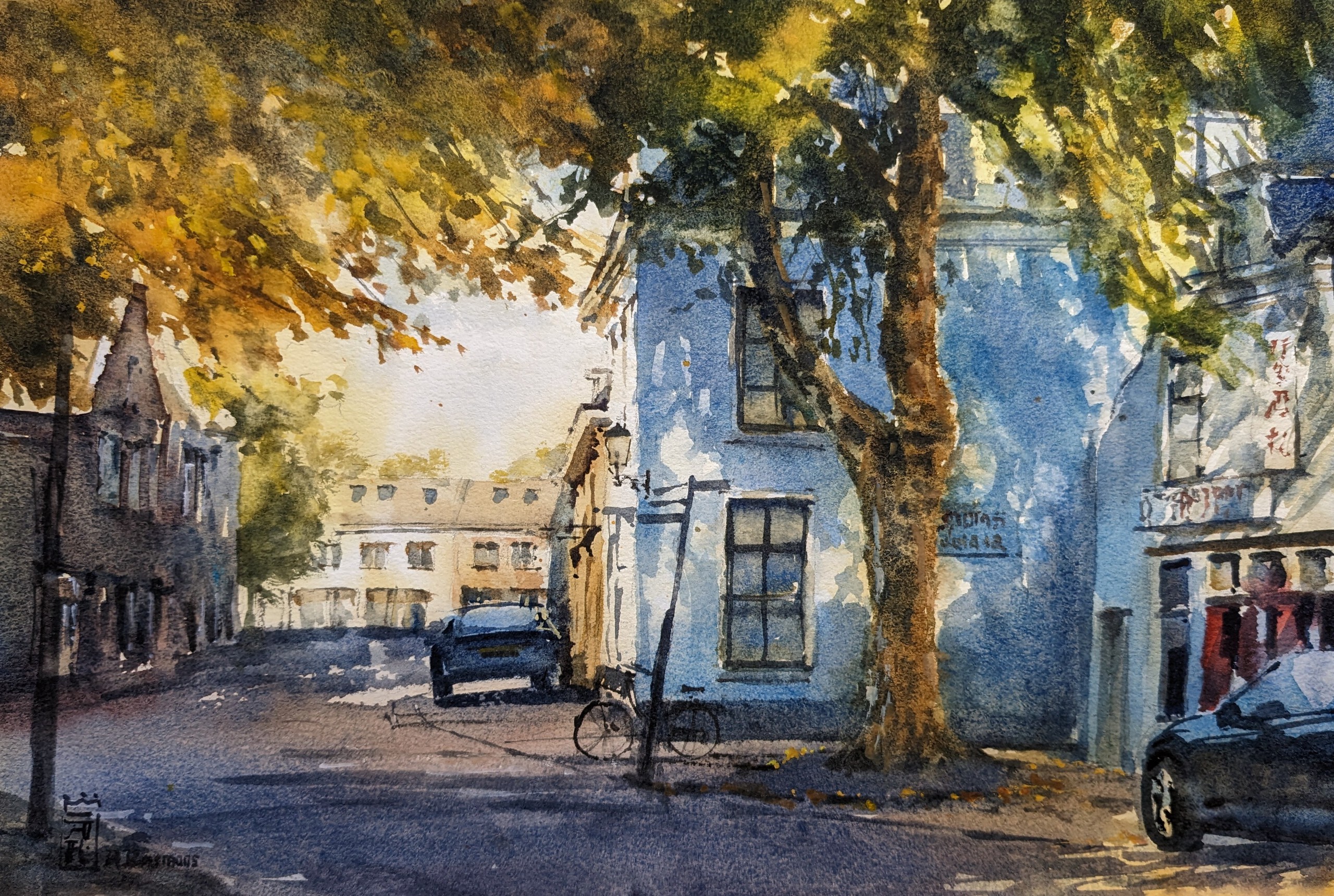 Harmelen Stad Dorp Realistisch Aquarel Schilderij Watercolor Painting Straat Townscape Herfst