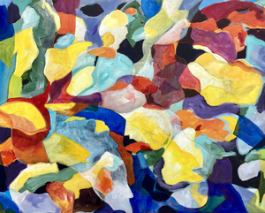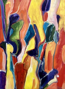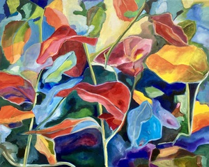Bladerlicht. Olie op doek. Doek 1 van een serie van 3. 100x80. Een gelaagd werk geïnspireerd op organische vormen. Wil je het werk bij je thuis op de muur zien? Gebruik dan de app Artplacer AR, laad de foto en projecteer dit in je interieur.