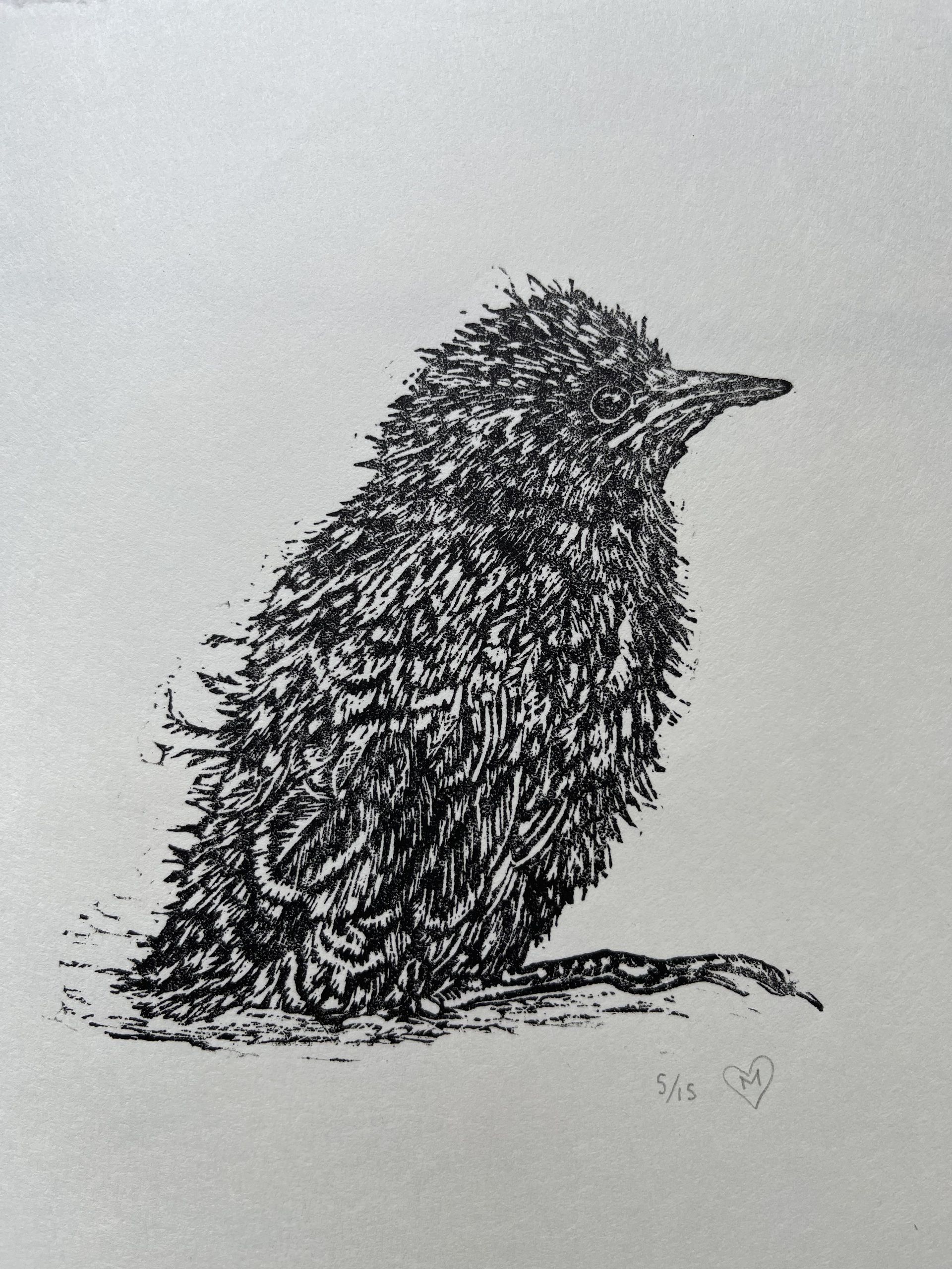 Vogel Realistisch Grafiek Vogeltje Spreeuw Linosnede Linocut Linoleumsnede Sparrow Gravure Vogelkunst Reliefprint Linocutting