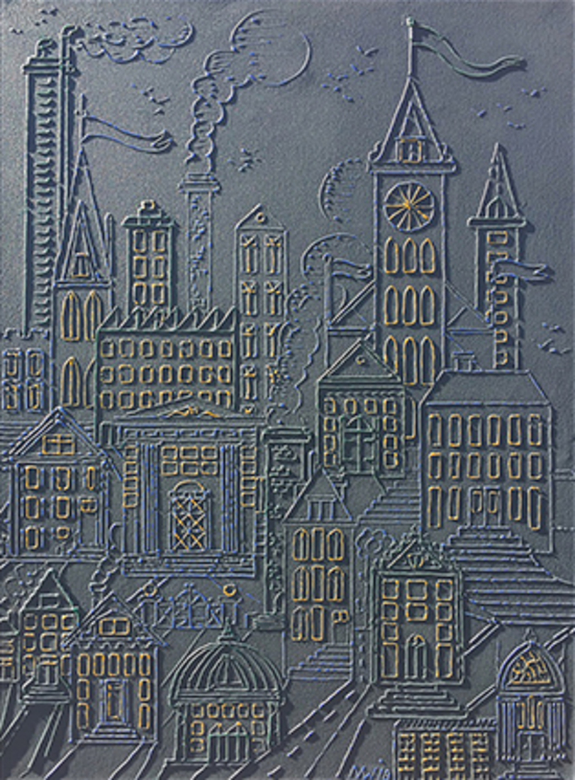 Het beeld, de lijnen zijn in kleur opgespoten met een injectienaald daarna overschilderd en toen weer opgeschuurd