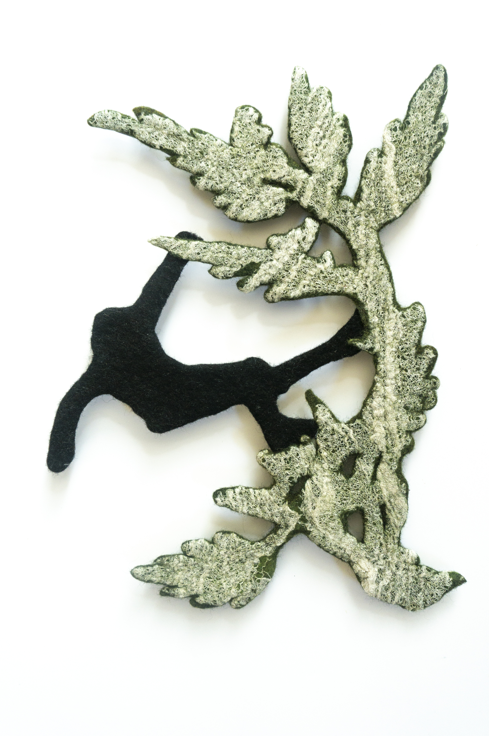 Het materiaal waar ik mee werk is wol dat ik vervilt tot draagbare kunst en viltpanelen. In mijn werk staat het onderzoek en experiment centraal. De natuur is mijn inspiratiebron