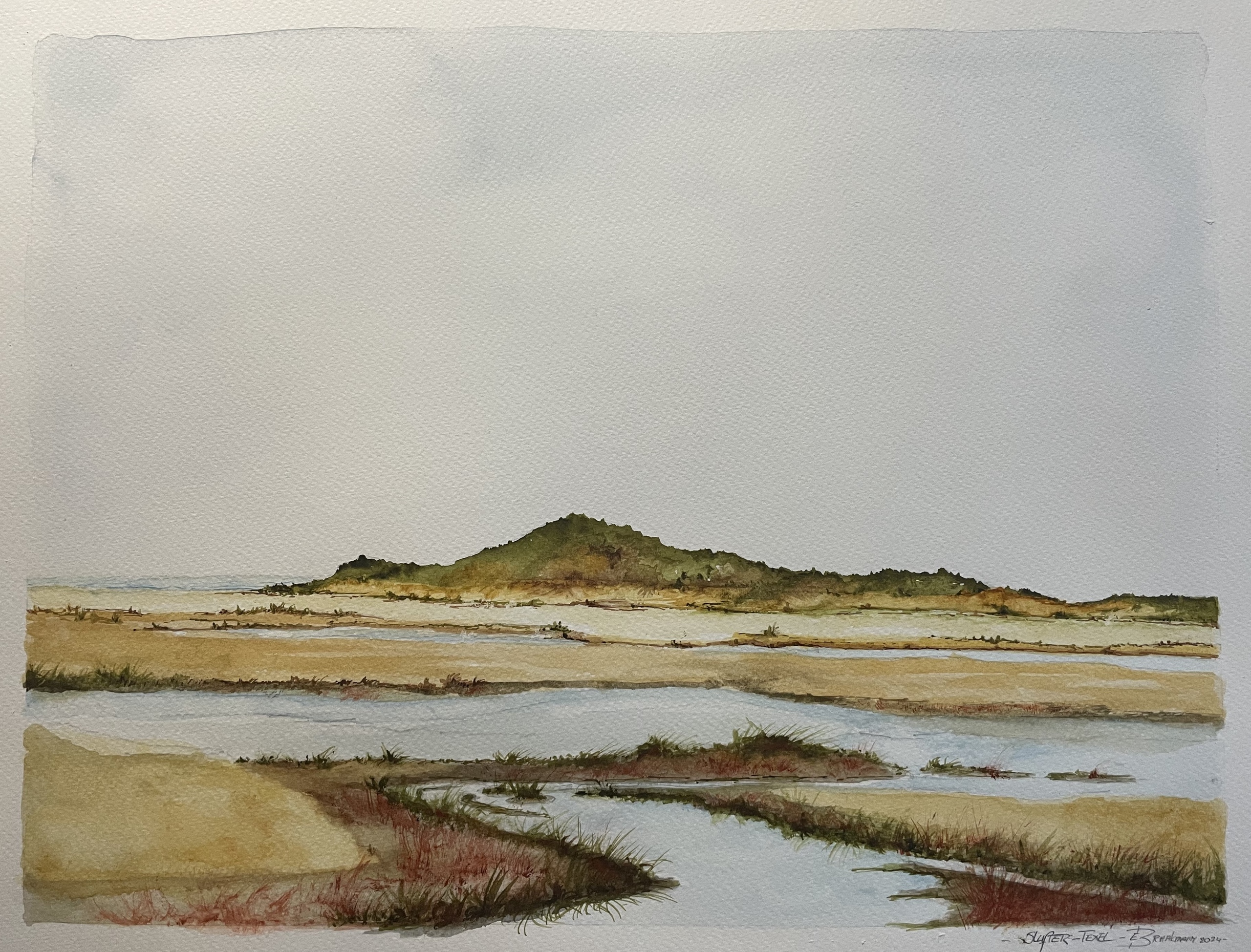 Aquarel op 300 gr Fabriano, dagmaat 30x40 cm met witte rand 40x50 cm
