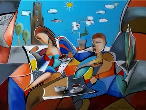 Prachtig nieuw olieverfschilderij " De vrouw " 80 × 60 cm op een kwalitatief canvas doek. Stijl : cubisme. Het schilderij heeft vernis laag voor bescherming.
