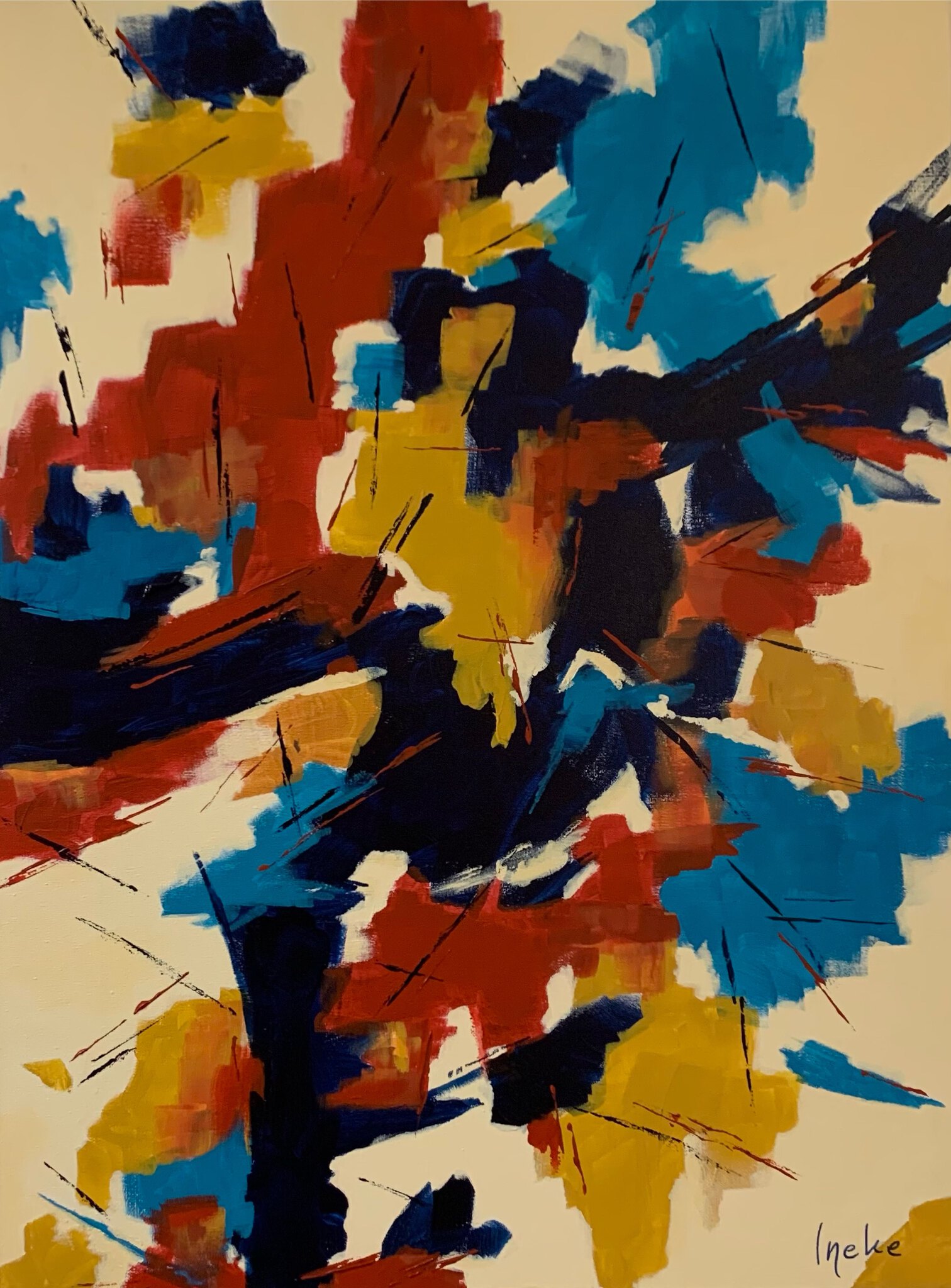 Ik schilder abstract of semi-abstract, experimenterend met kleuren, lagen en imperfectie. Kleuren drukken emotie uit en zijn heel persoonlijk. Acryl of mixed-media.