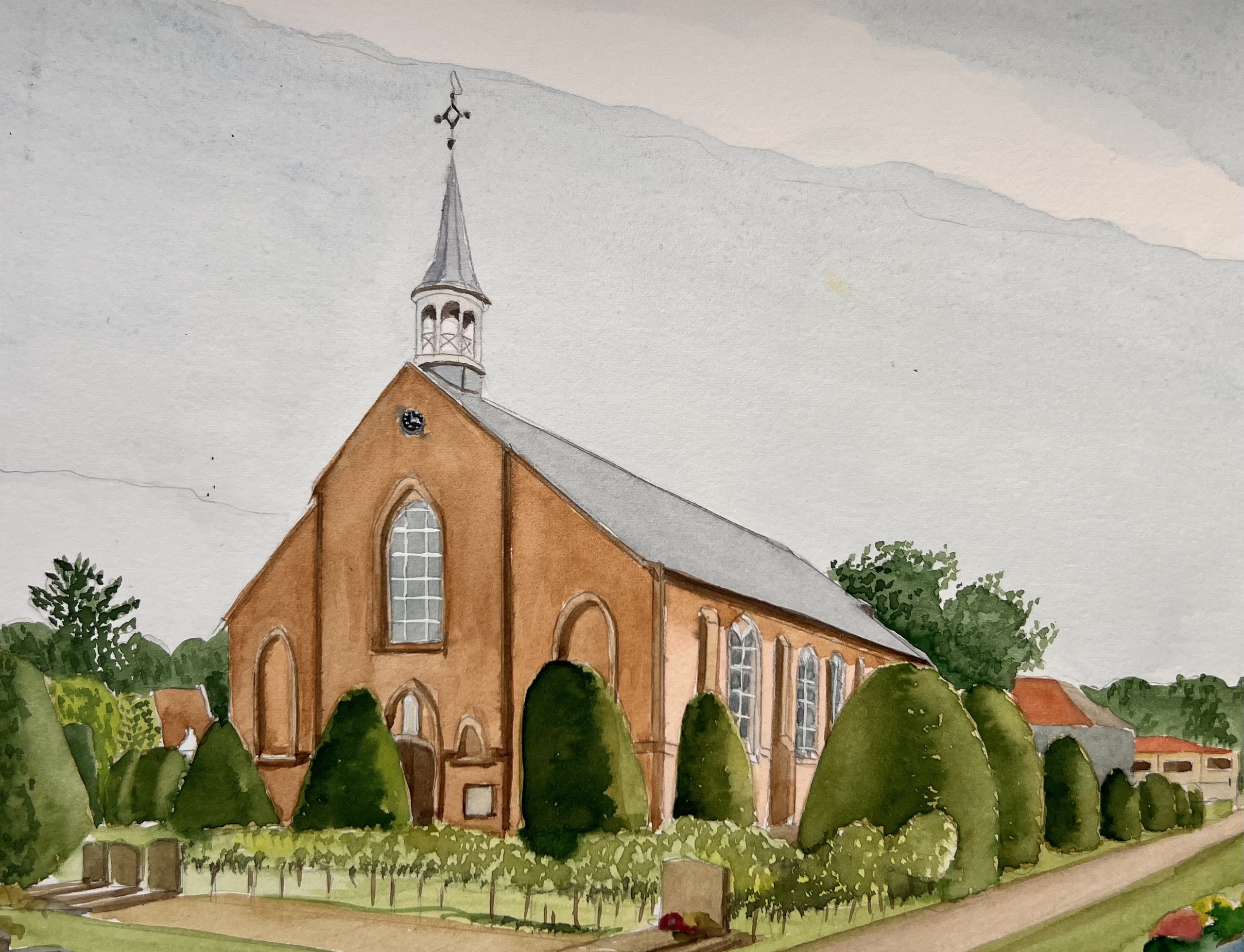 Aquarel Rust Kerkje Bezinning Pittoreske Maria-aalter