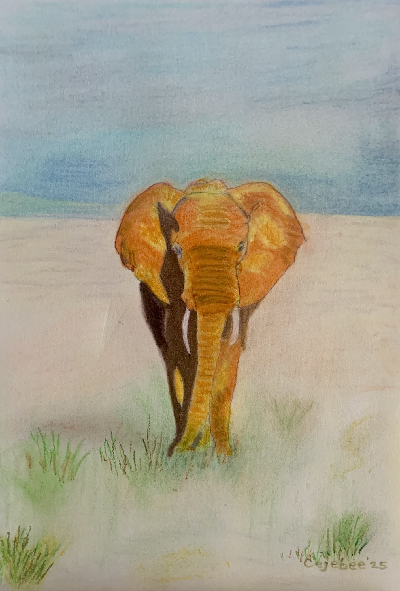 Deze 'ruwe' olifant is gemaakt met soft pastel krijt. Ik vind hem mooi. En jij? Laat 't mij even horen.