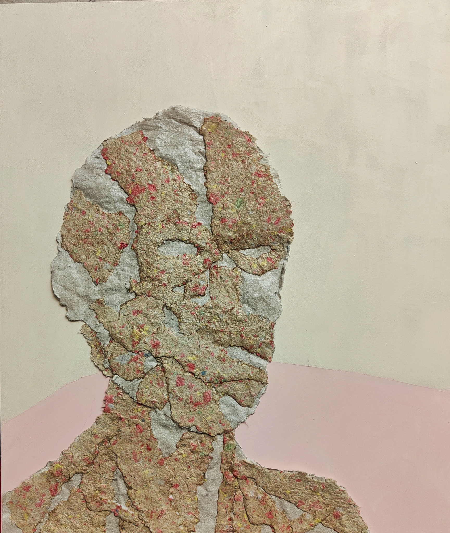 Collage handgeschept papier op houten paneel