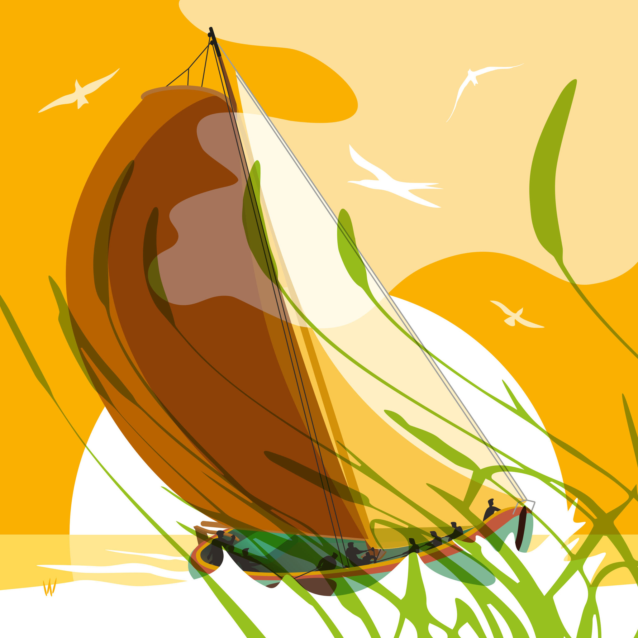 Spiritueel Digitaal Natuur Grafiek Surreëel Minimalistisch Zeilen Tekenkunst Ruimtelijk Boot