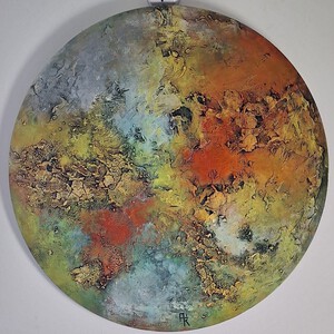 Uit de serie Roundwego Roundwego XV Doorsnee 80 cm, rond canvas Mixedmedia/materie