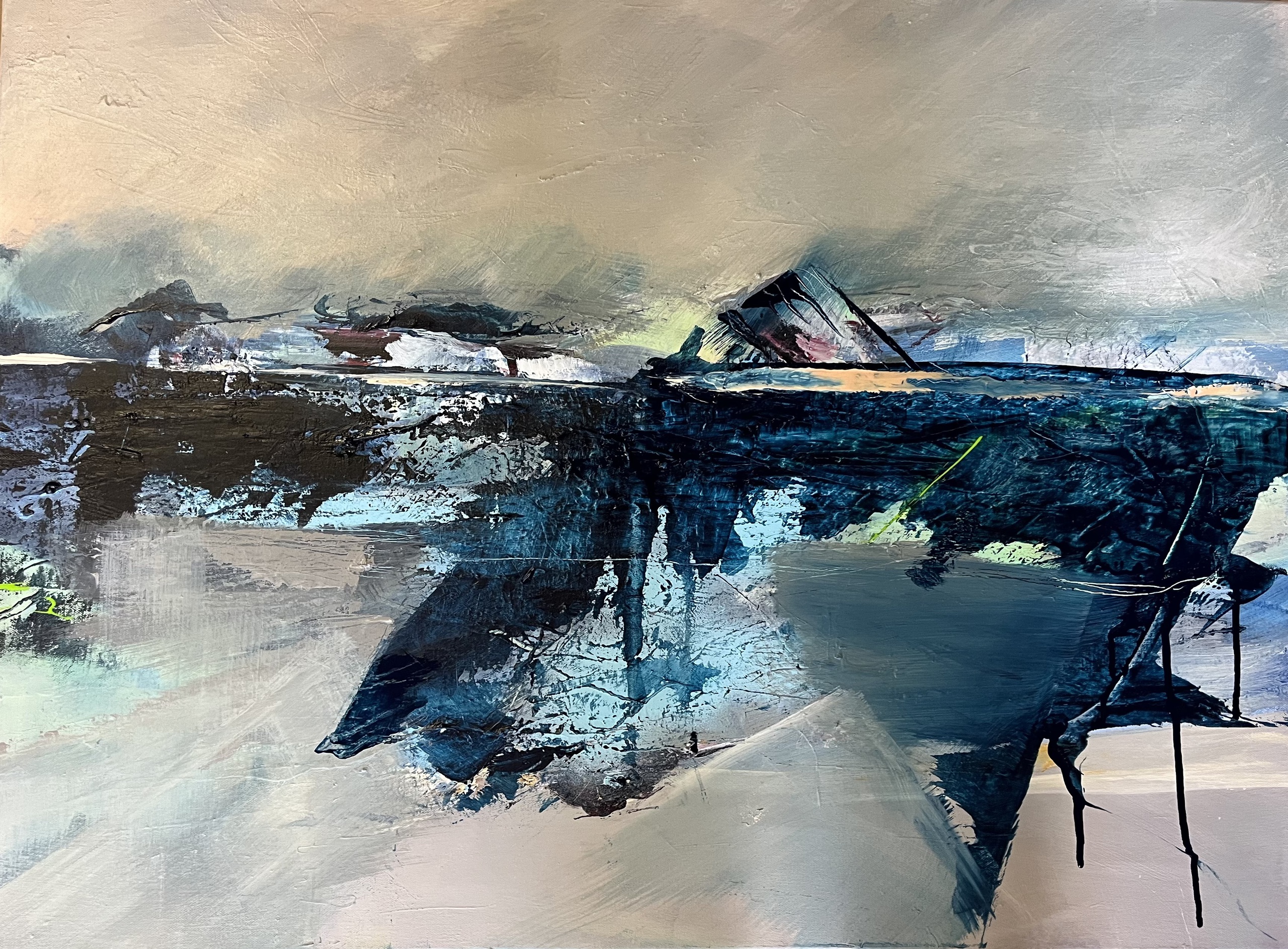 ANJA TEUNISSE Ik schilder beelden die ontstaan vanuit mijn binnenste. Onbewust is de natuur altijd mijn inspiratiebron, beelden van het hooggebergte zitten vaak voor op mijn netvlies.