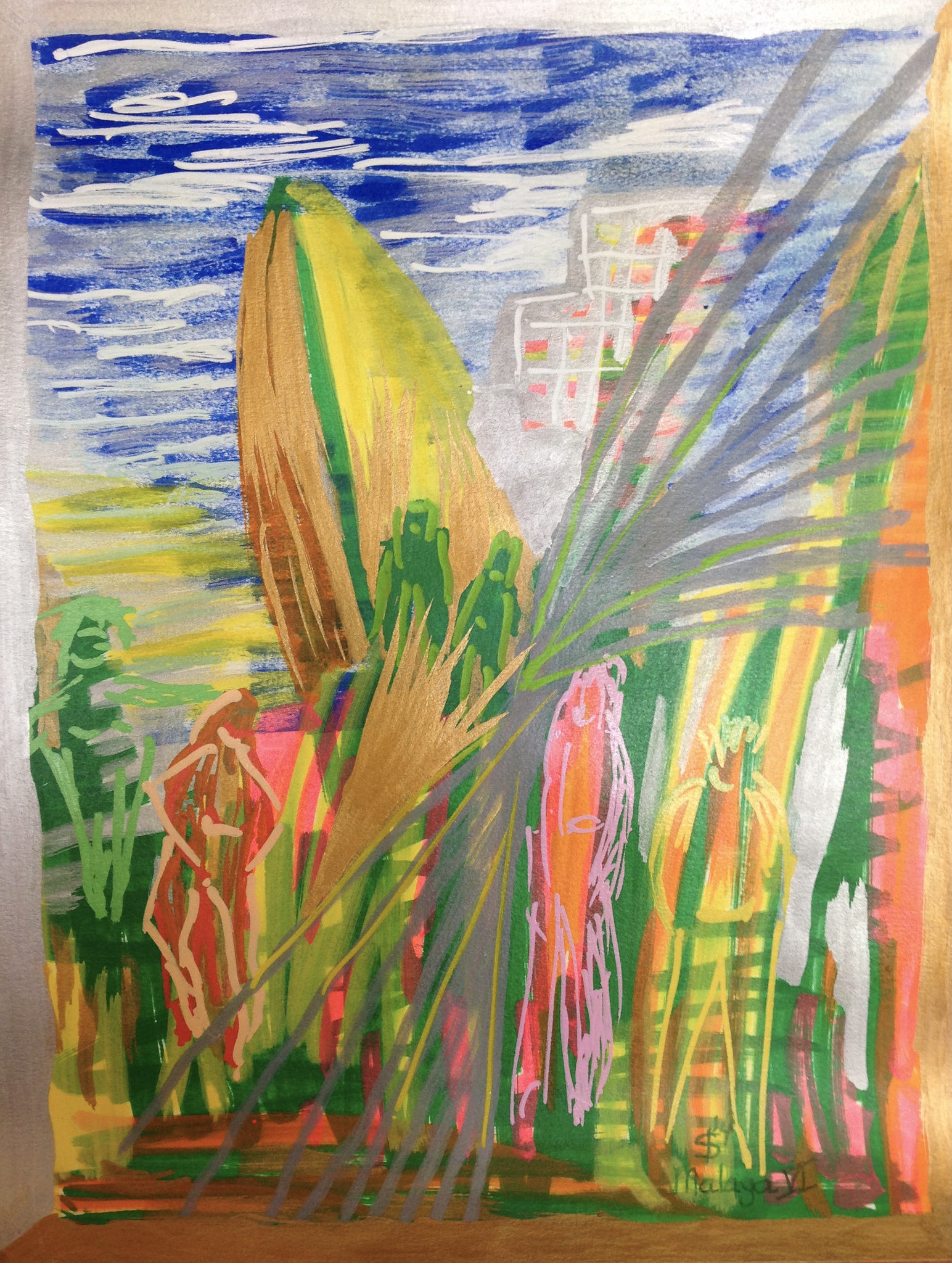 Zee Abstract Rood Oranje Geel Blauw Oker Brons Groen Kleurrijk Tekening Roze Zilver Zonnig Figuren Spanje Stadsgezicht Planten Expressionisme Mediterraan Acrylverf-stift