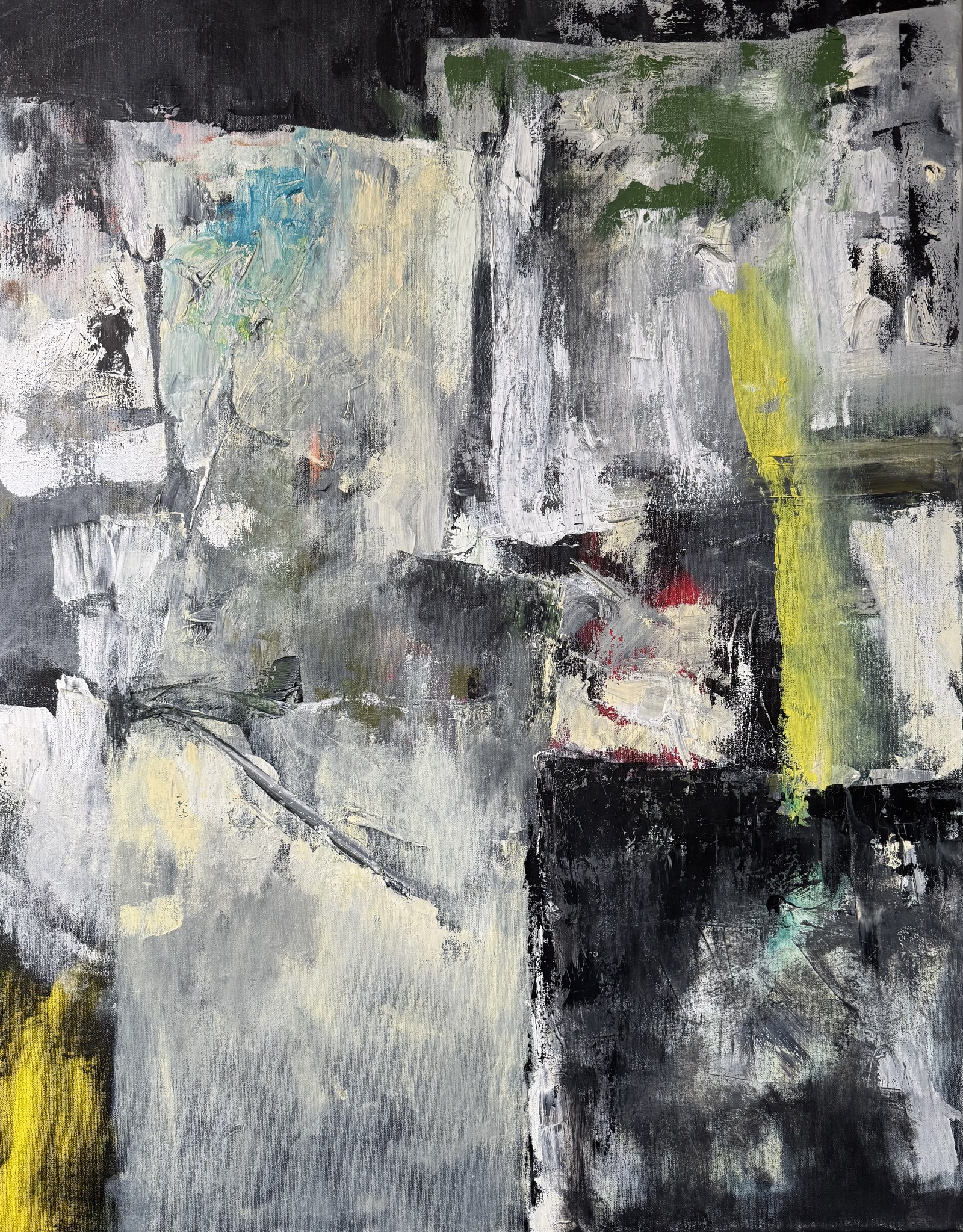 Werk in acryl en olie. Krachtige stijl, kleurrijk, uitbundig. Op de grens tussen non-figuratief en herkenbare vormen.