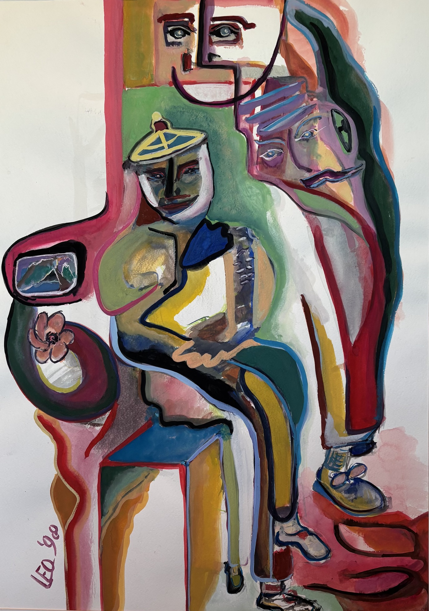 Vrije invulling van personen als ware het objecten. De objecten stel ik samen als een stilleven. Verder voel ik me vrij om mijn interpretatie te schilderen.