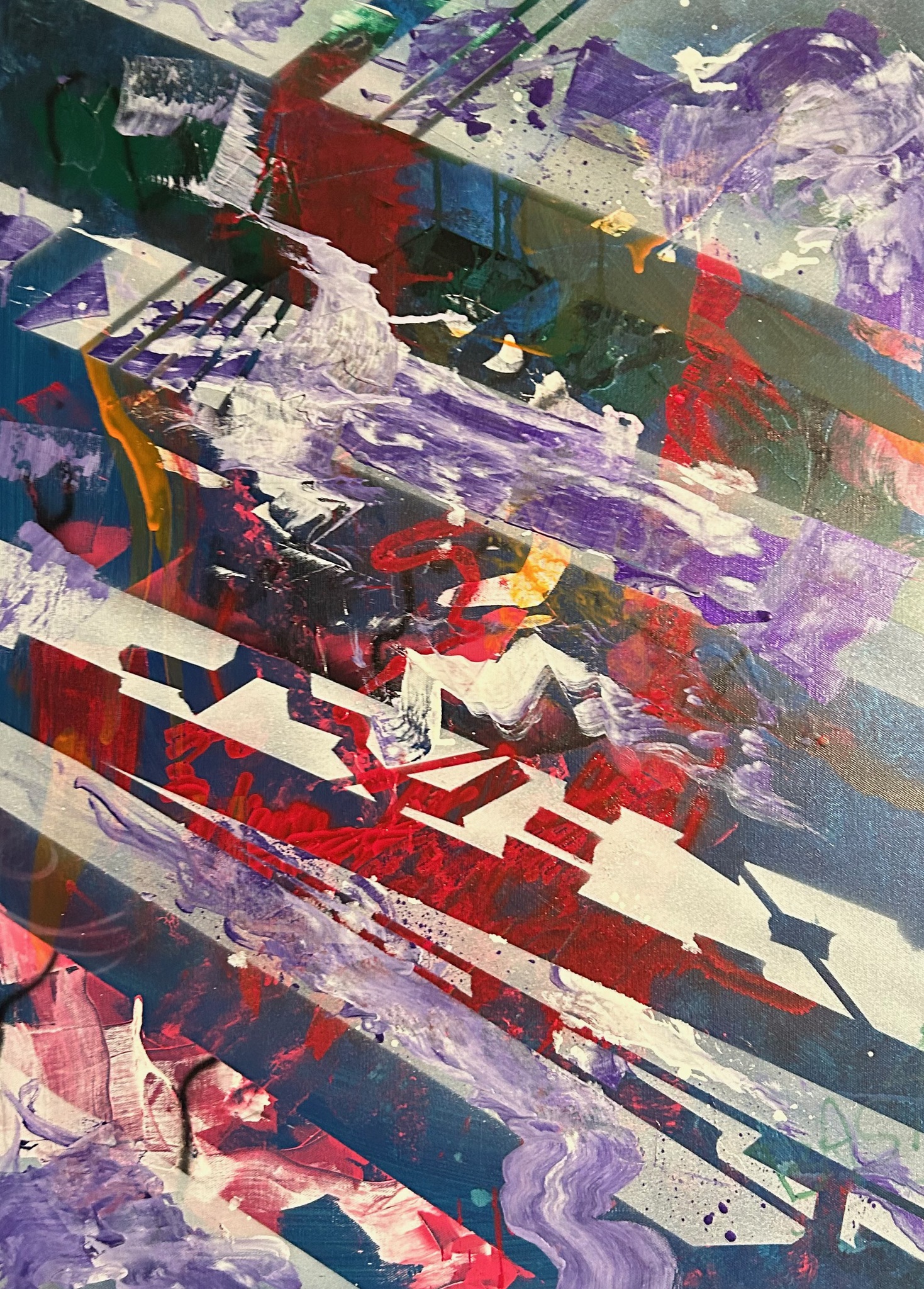 The future, abstracte schildering mixed media. Met futuristische "tekenen" snelheid en kleur. Aan staan