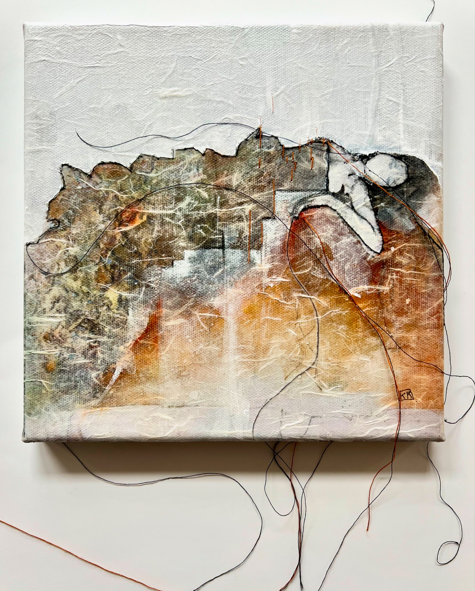 Mijn losse draden staan voor groei & verandering. Deze bewegen mee met warmte & wind & zijn naar eigen gevoel te leggen op het doek. Ik hou van puur, materie & textuur.