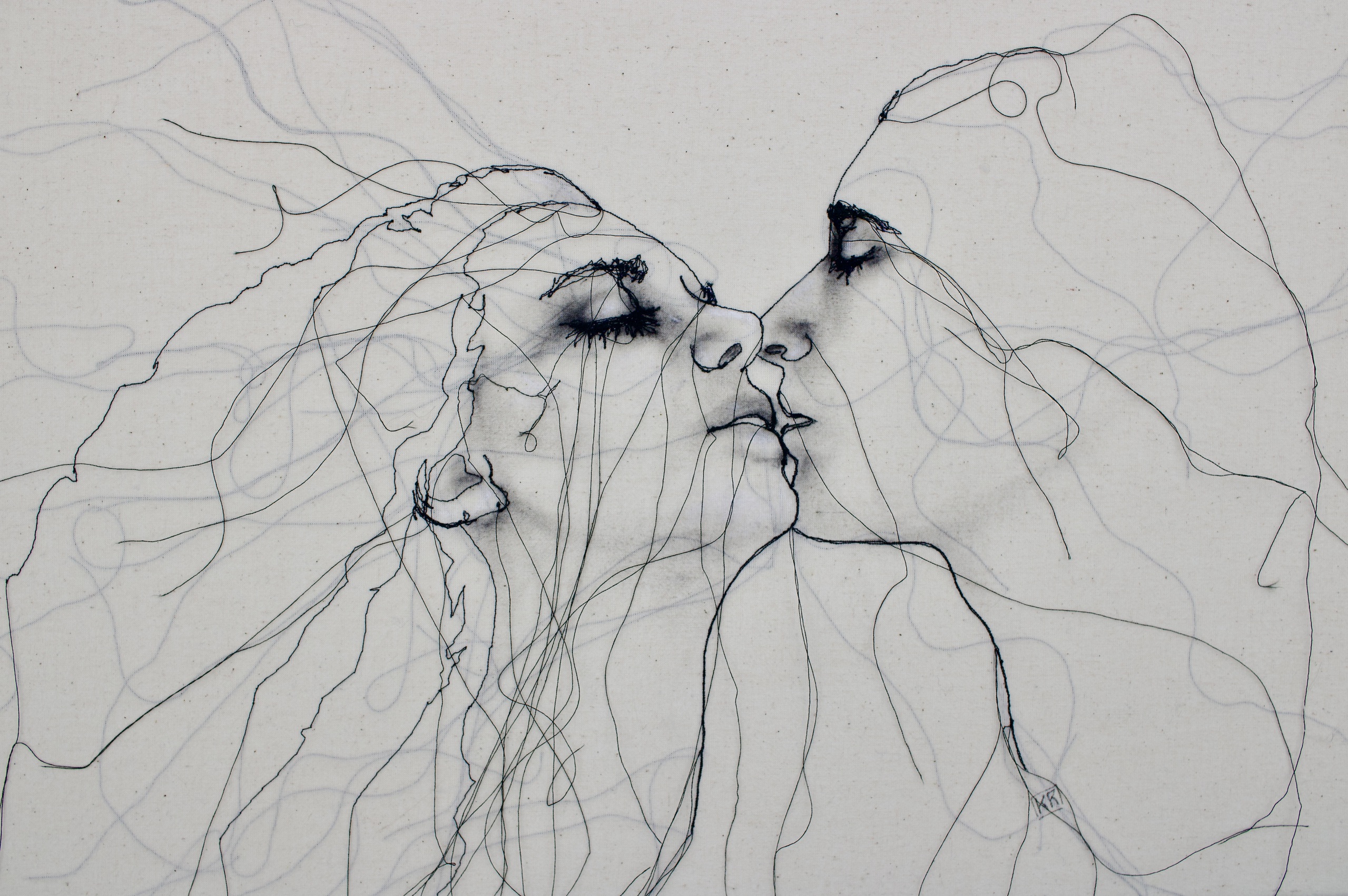 Vrouw Liefde Textiel Draad Lijnen Kus