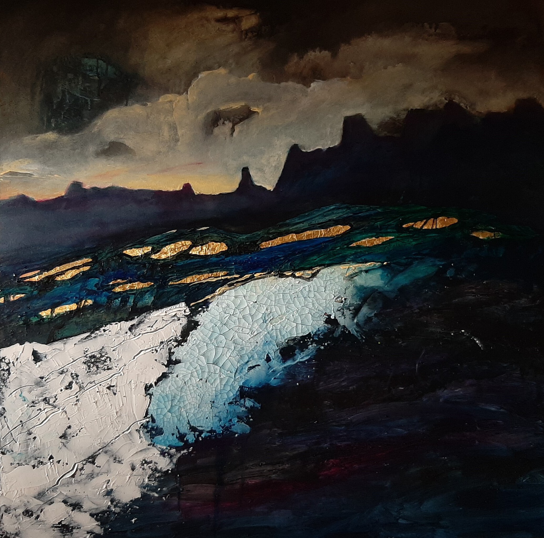 Mijn inspiratie voor dit schilderij is tweeledig, bijna contrasterend: Een mix van een lied van The Beatles (Golden Slumbers, 1969) en het hallucinerende landschap van de Grand Prismatic Spring in het Yellowstone NP (dat we in 1917 bezochten). Once, there was a way To get back homeward Once, there was a way To get back home Sleep, pretty darling, do not cry And I will sing a lullaby