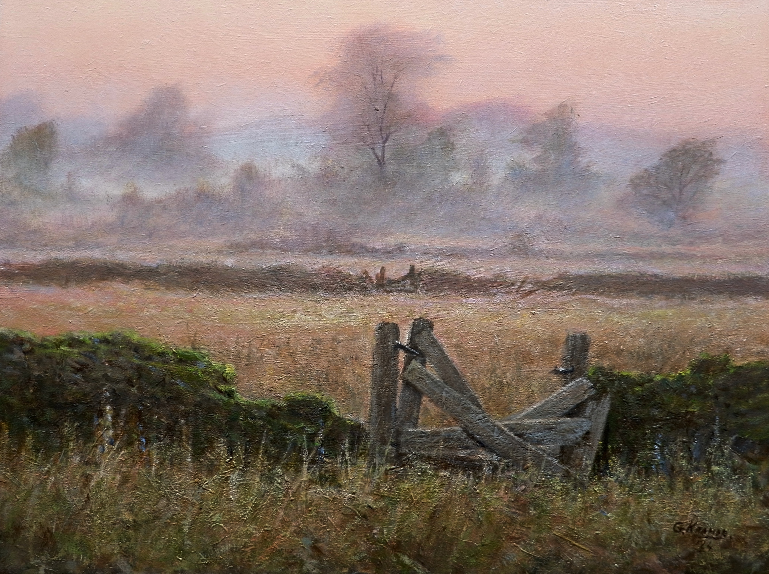 Landschap Acryl Art Natuur Old Oud Sun Air Hek Fence Misty Keermuren