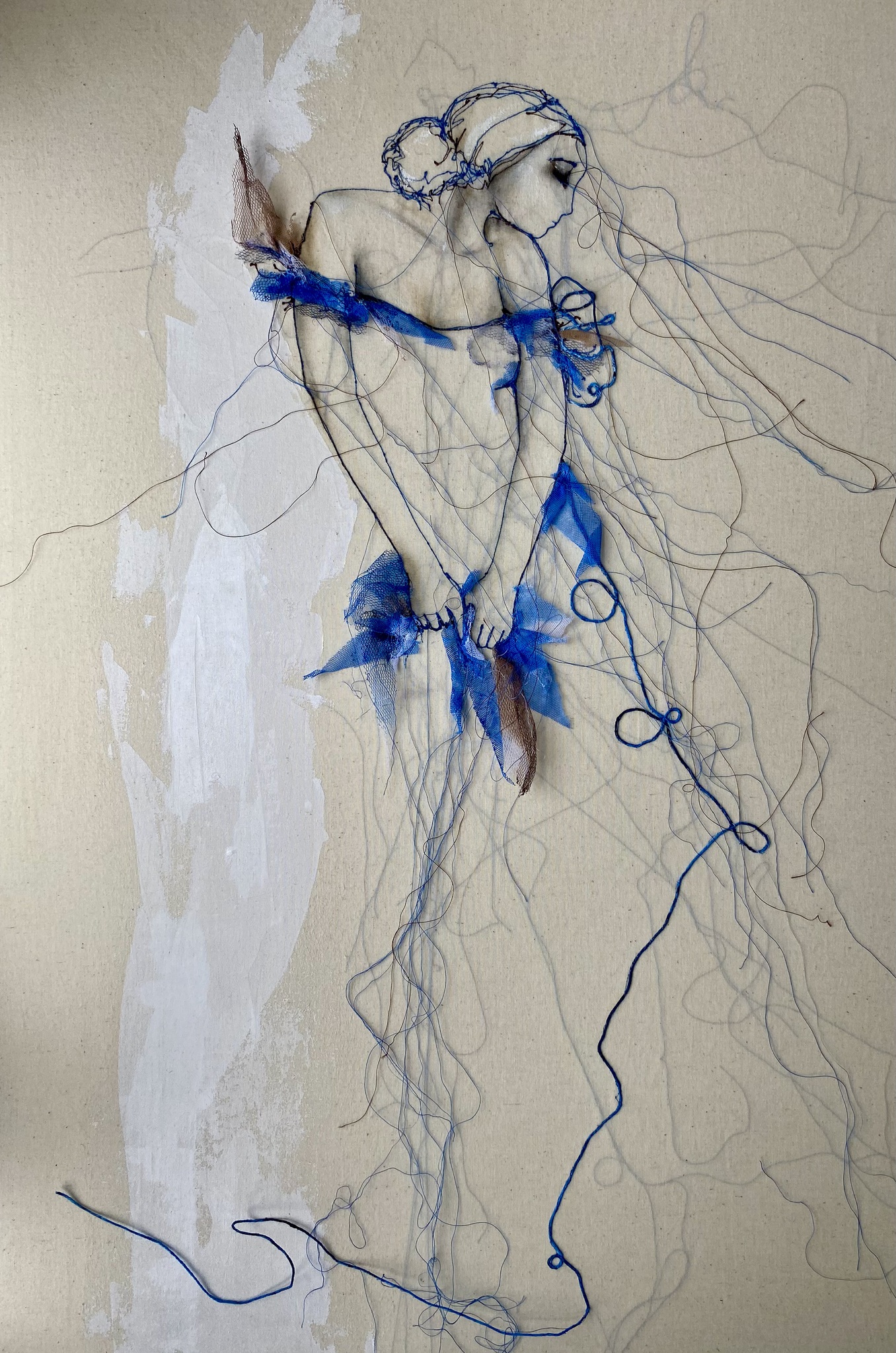 Afgestudeerd Monumentale Vormgeving aan de Academie Beeldende Kunsten Maastricht. (Maastricht Institute of Arts) Vrouwelijke figuren, sensualiteit, kracht en kwetsbaarheid in zwarte draden.