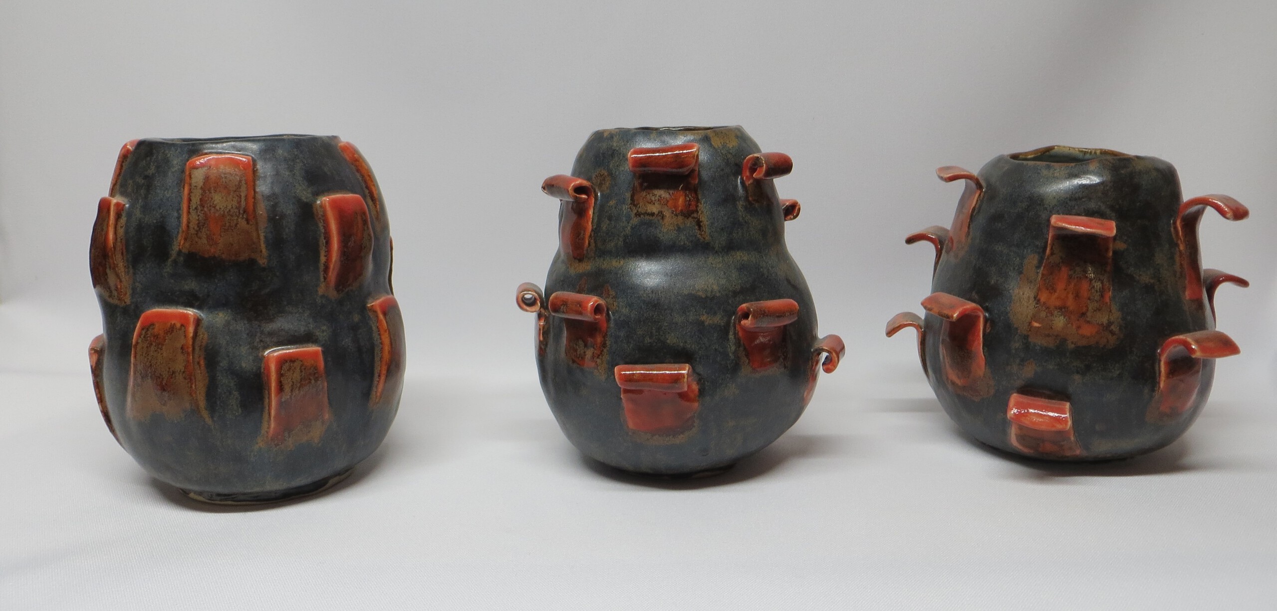 Deze vaasjes zijn al enige tijd geleden gemaakt, maar ik vind ze zo leuk :-) Ze zijn steengoedgebakken en stellen het verloop van de seizoenen voor.
