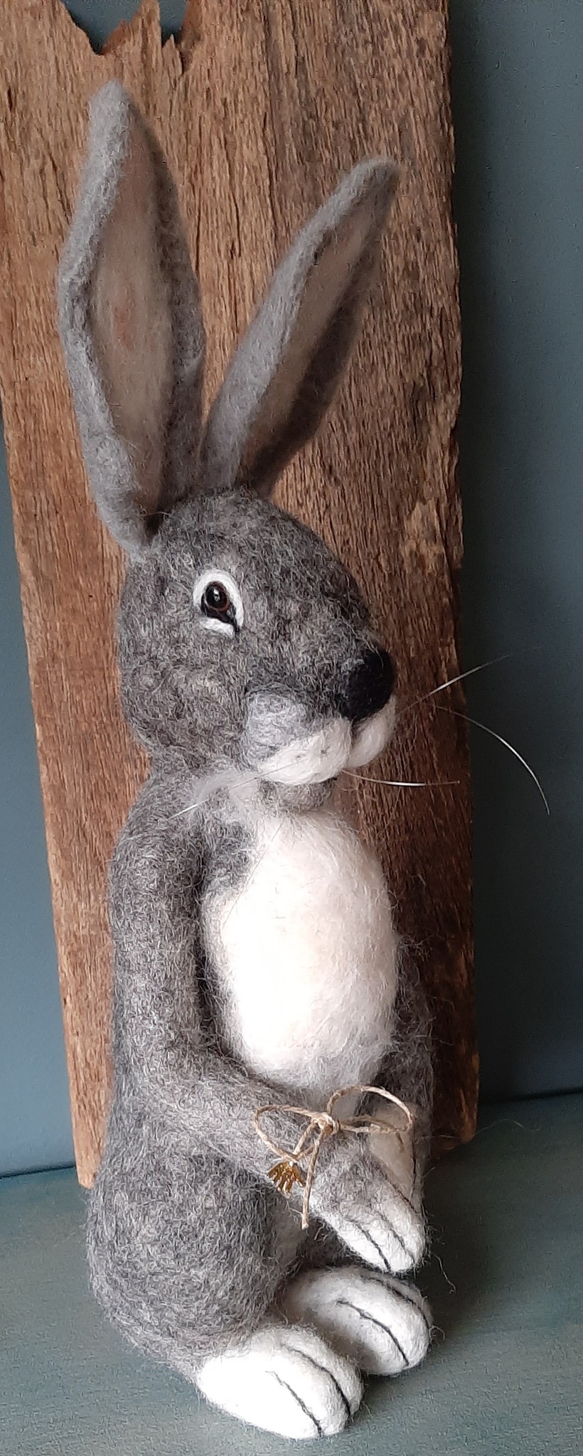 Haas genaaldvilt wol Afmeting: Hoogte 40cm (gemeten incl. de oren) breedte 14cm VERKOCHT