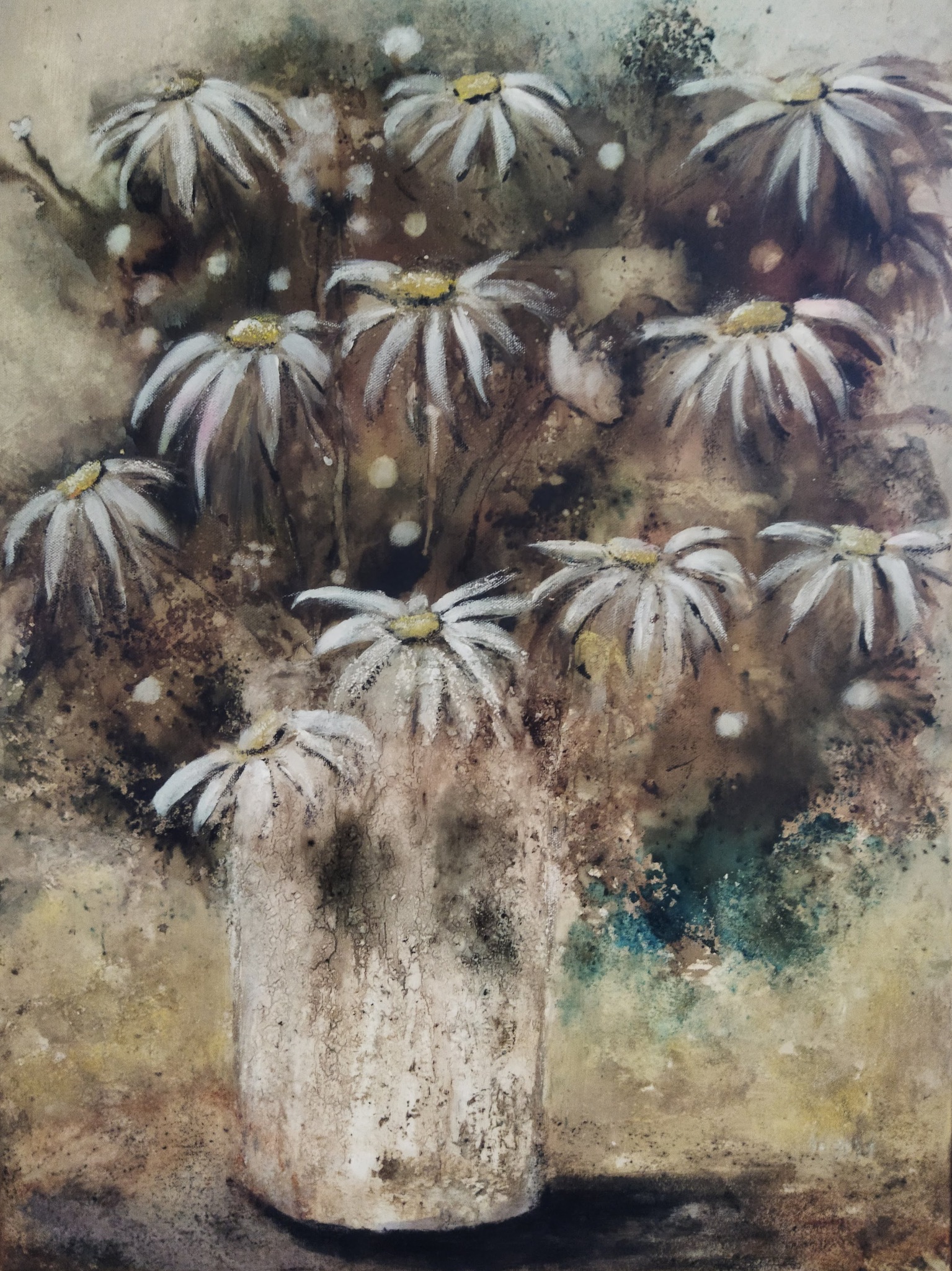 Kamille in craquele vaas.
