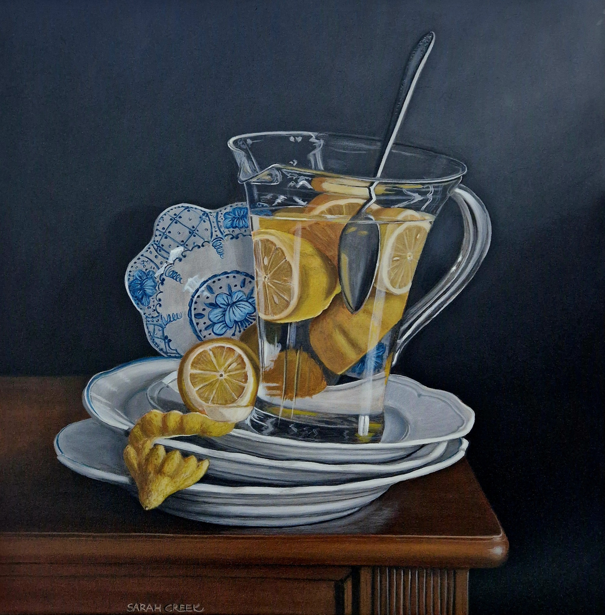 Sarah Creek schildert met acryl op canvas of linnen. Onderwerpen zijn portretten en stillevens. Sarah geeft les aan 55 talentvolle cursisten in een atelier aan huis.