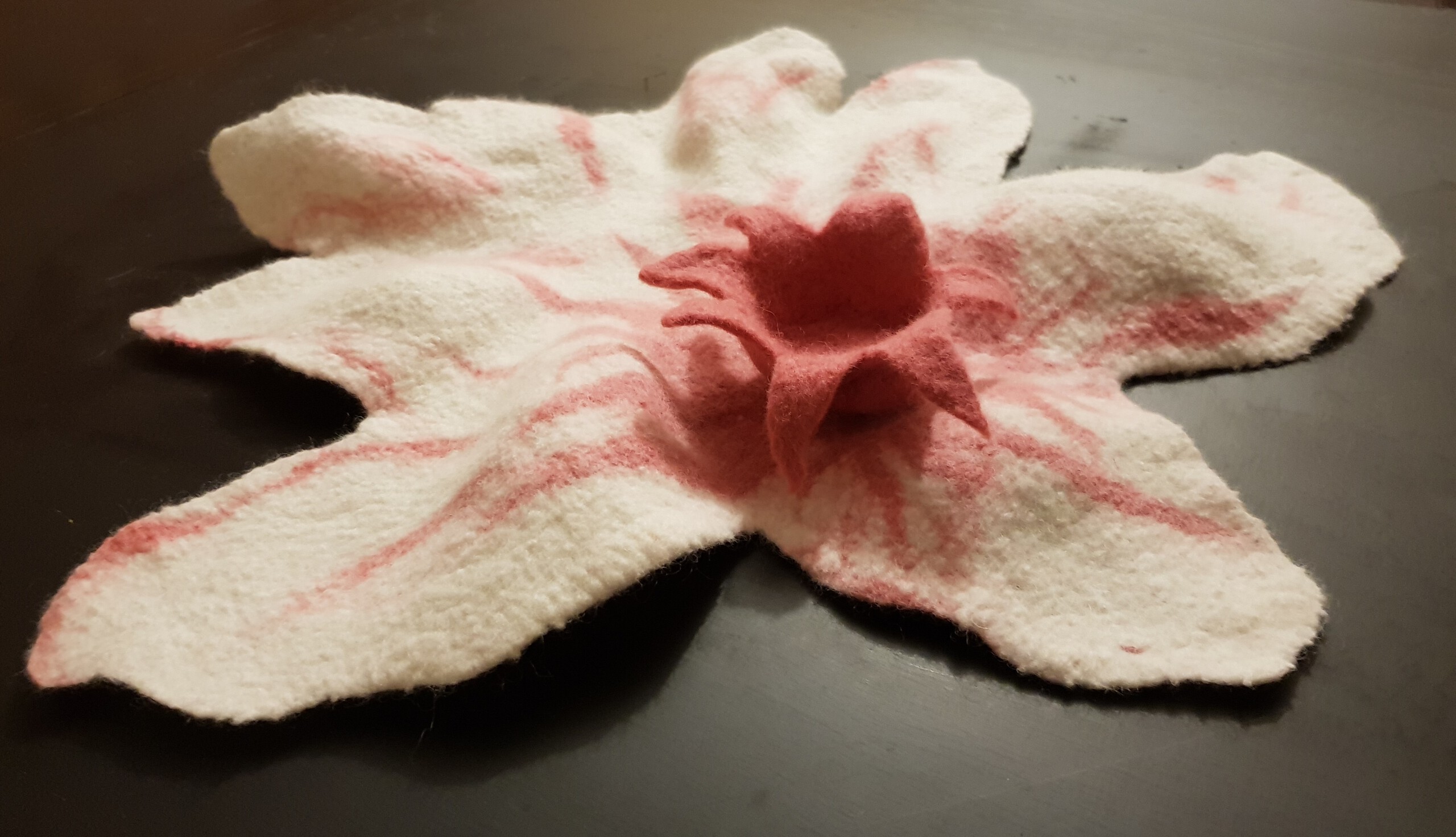 De witte bloem staat voor spirit, puur, zuiver en eenvoud. De rose kern in het midden staat voor zachtheid en kwestbaarheid. In de kern kan een led waxinelicht branden. Na de uitvaartdienst kan het in het interieur geplaatst worden.