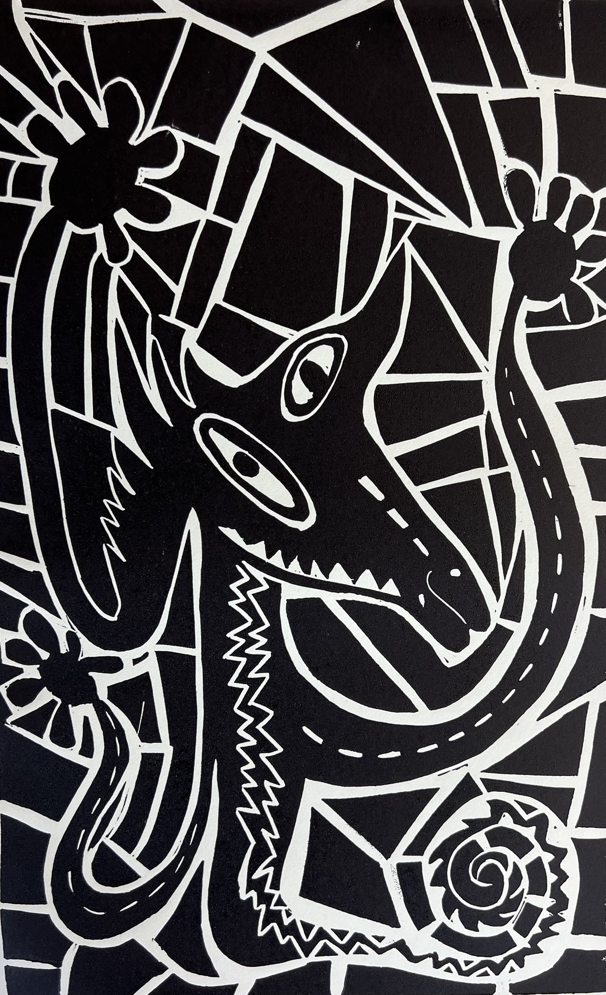 Geinspireerd door een zelf gemaakte glas mozaik van een salamander. Nu als monster!