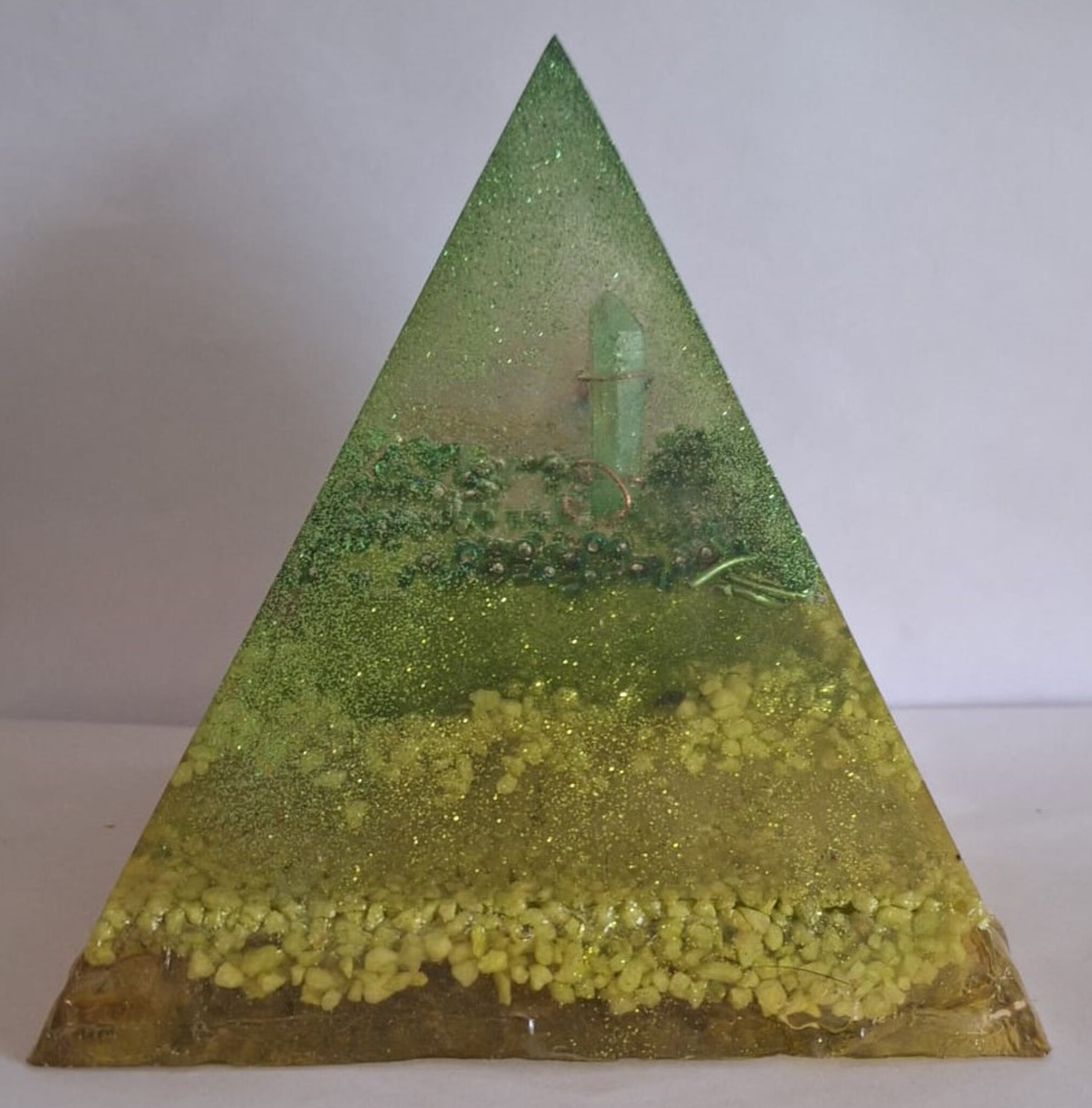 Orgonite / Piramide Groen (edel)stenen Glitter Kralen Hars Epoxy Resin