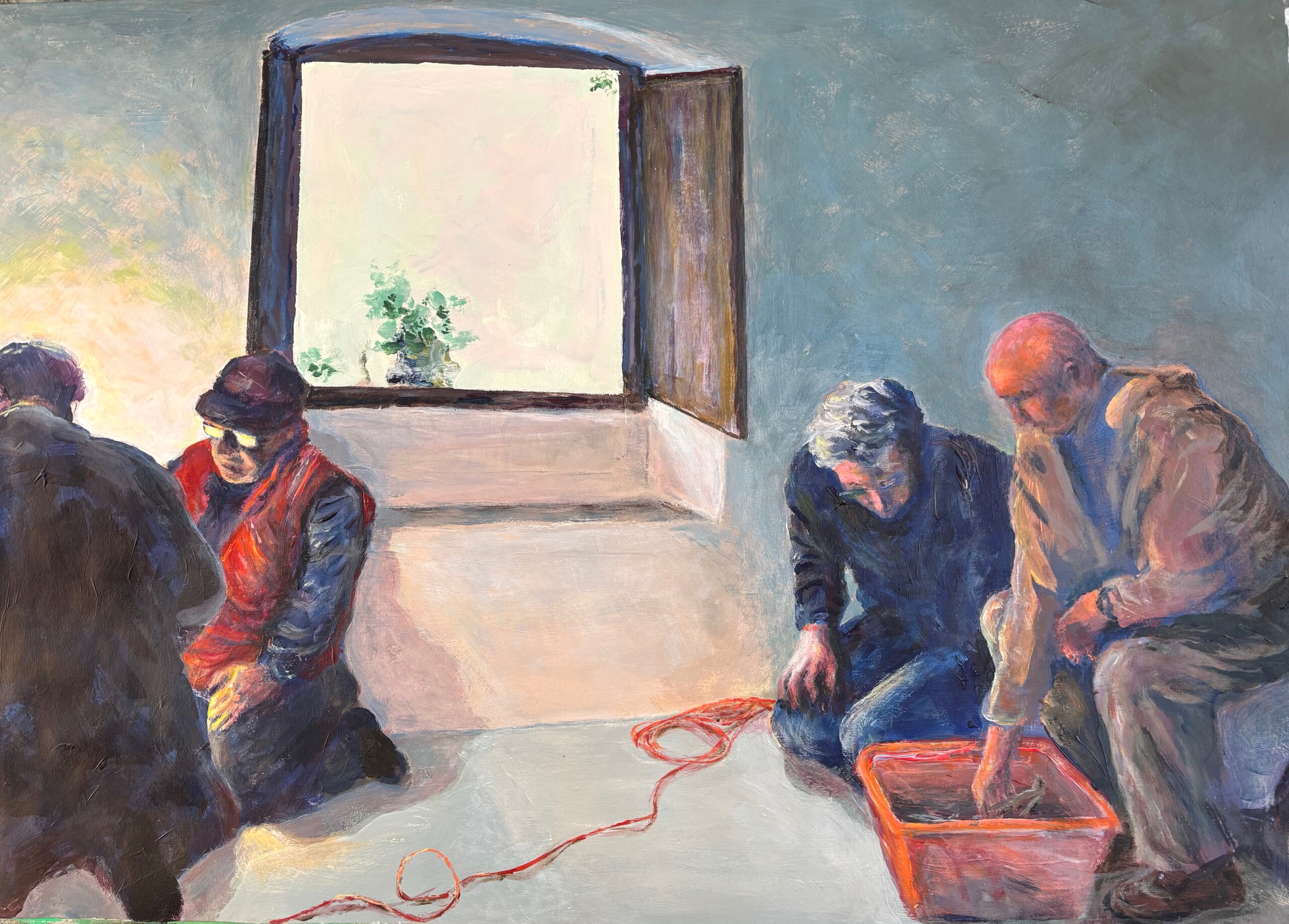 Raynold Bruessing, geboren in 1946 in Den Haag. Ik maak acrylschilderwerk op papier. Autodidact. Ik gebruik afbeeldingen op foto’s voor een verhalend resultaat met de verf.