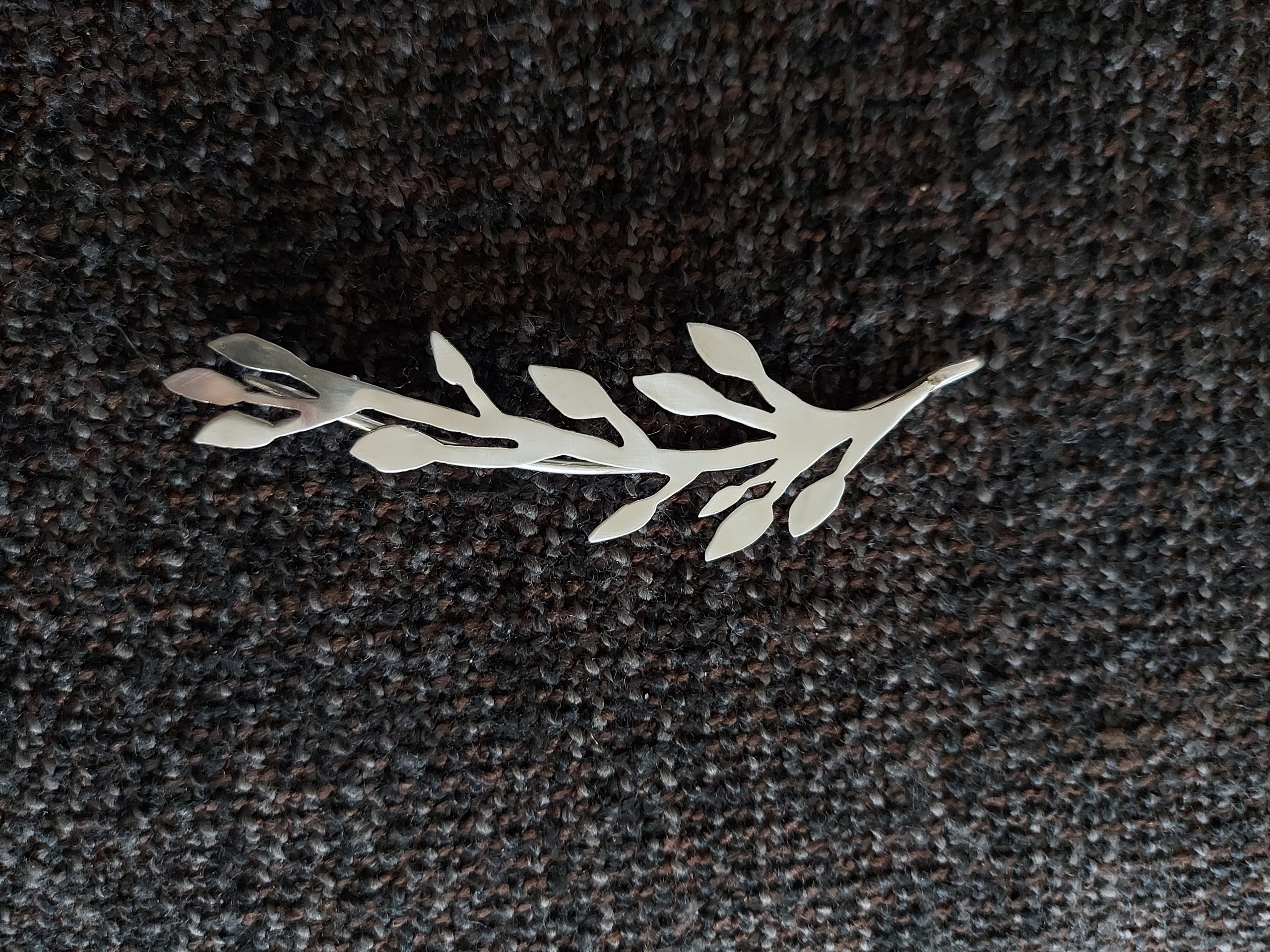 Zilveren broche, die ook als vestsluiting te dragen is.