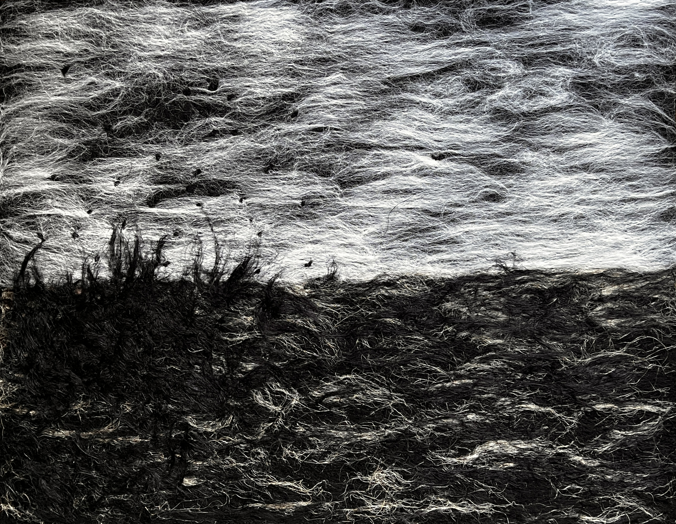 Wol Woest Vlas Wit Zwart Bruin Land Landschap Vogels Gras Leeg Omgeploegd Modder Aarde Hooi Akker Troosteloos Leegte Fiberart Fiber