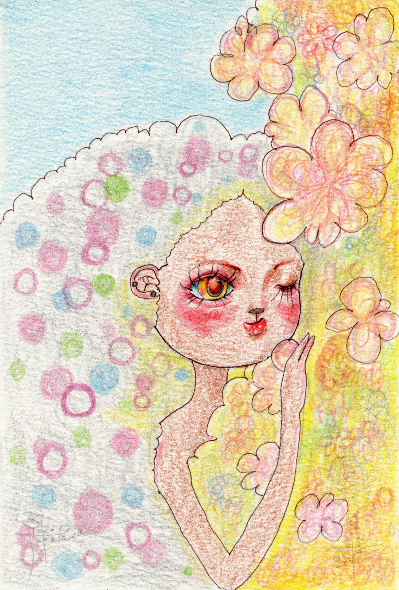Yoko Fukasawa was born in 1982. 2001-Japan traditional craft department,Metal crafts major 2001-Volkswagen new Beetle - art contest The third place. 2002-TOKYO DOME - Tableware festival Fine work. 2017-And Schizophrenia has been revealed. Her paintings are outsider art. They are characterized by simple shapes and bright colors. She wants you to look at them and relax.