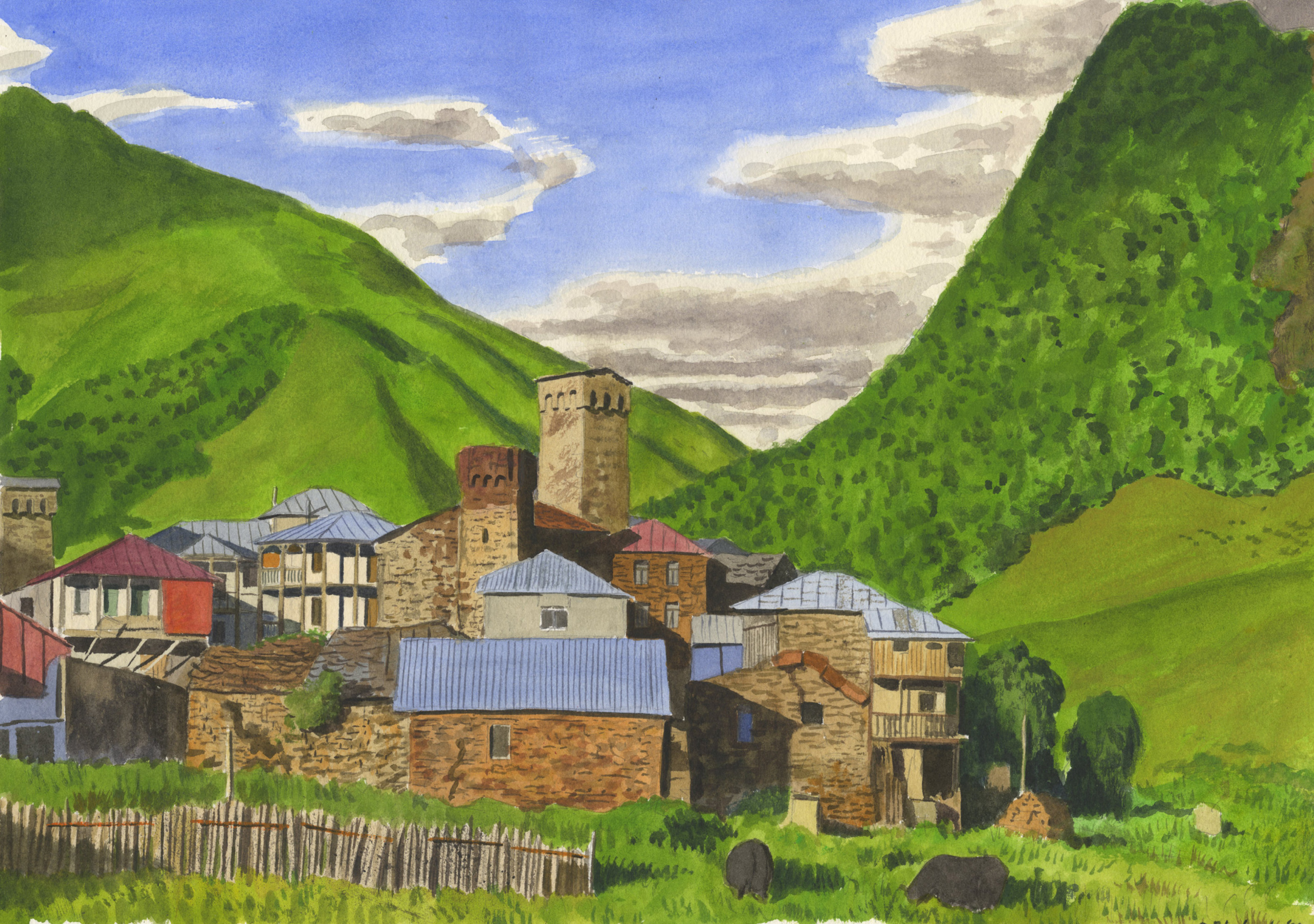 Het dorp Murqmeli, net buiten Ushguli, hoog in de bergen van de Georgische regio Svaneti.