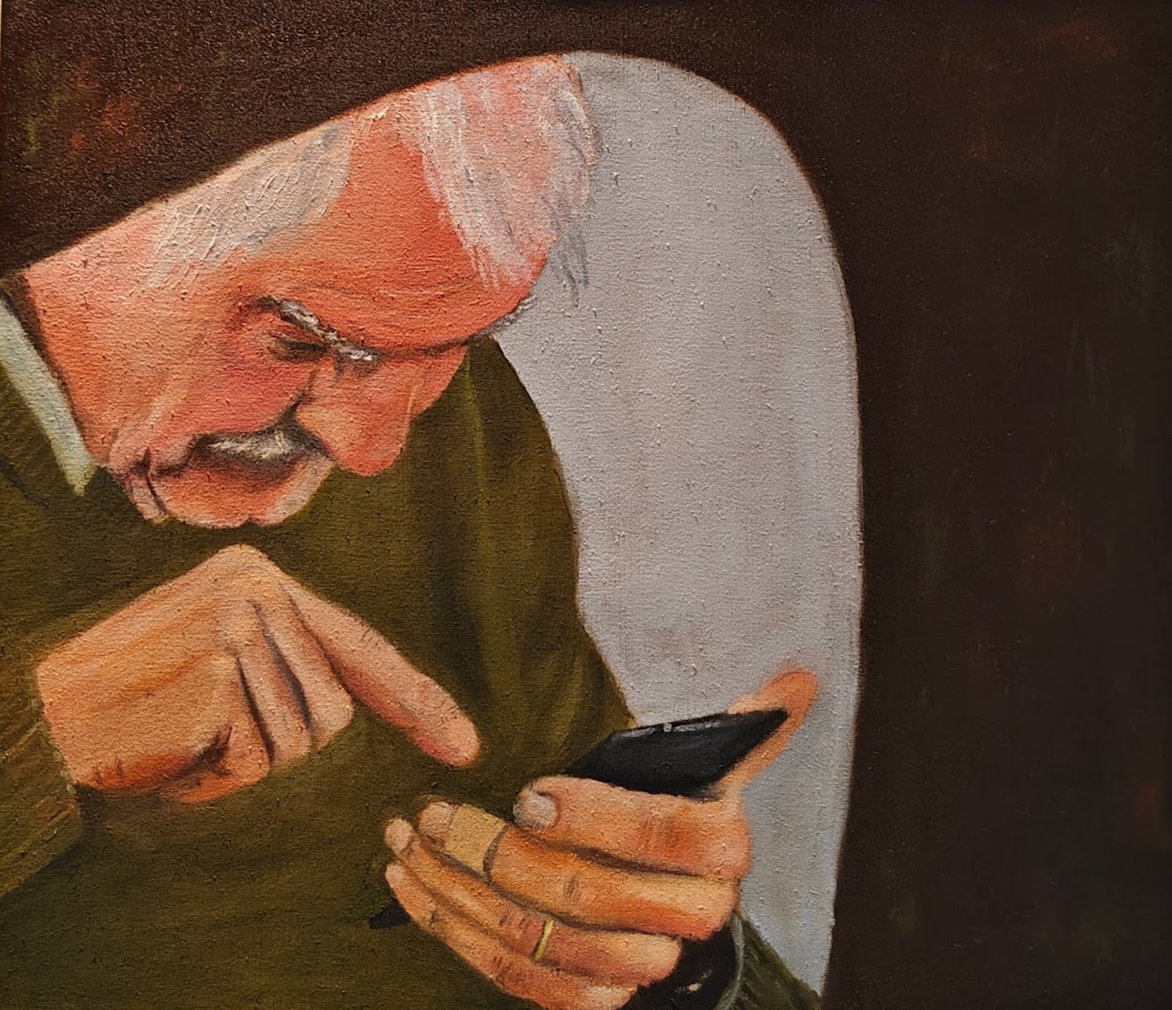 Man Oude Concentratie Mobieltje Appen