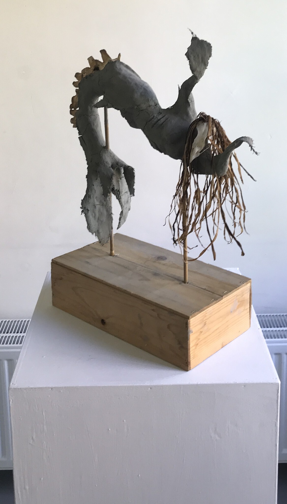 "Westenschouwense Zeemeemin" is een sculptuur uit the serie "Escapism - No Escape" dat verhaalt over het onder druk staan van de leefbaarheid voor jongeren in Zeeland. Zeeuwse zeeklei, dierlijke beenderen, plantaardige materialen, ijzerdraad, hout