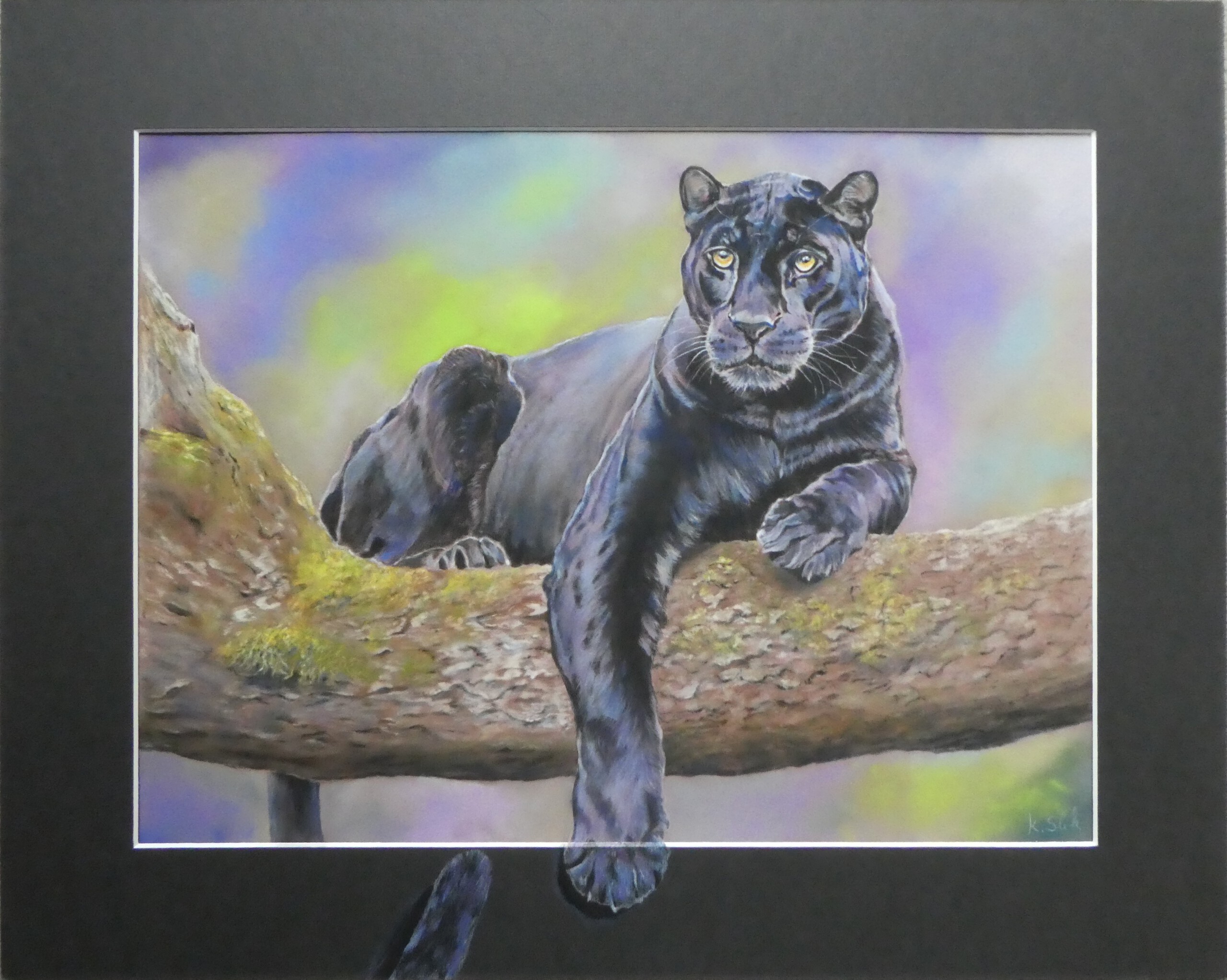 Zwarte panter. Tweede werk uit een nieuwe serie waarbij ik de passe-partout betrek bij het kunstwerk.
